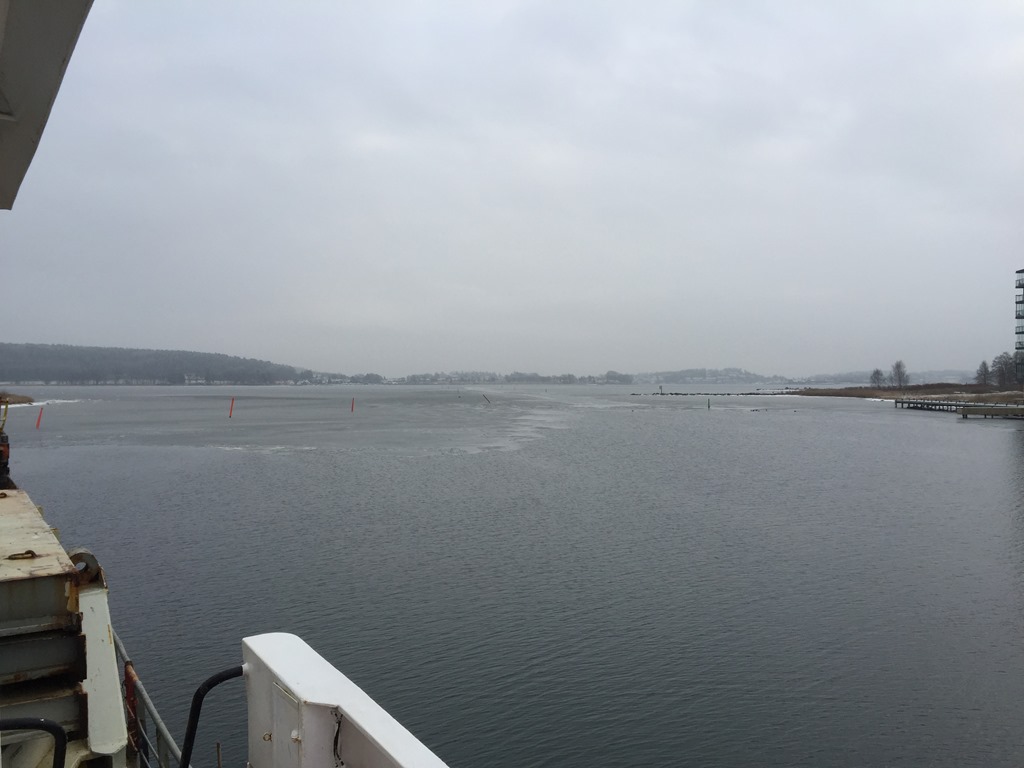 08:00 Kommer på vakt när vi passerar Färder. Stilla och –2 grader och när vi kommer längre in mot Tönsberg så ligger där is.![]()