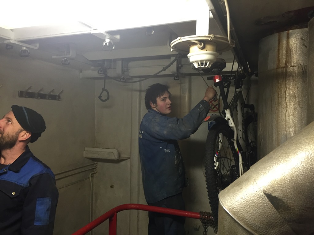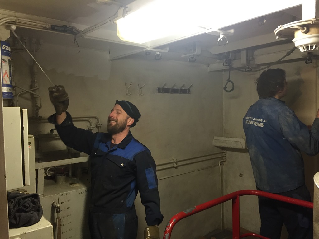 Tillbaka på båten så börjar de måla lite i omklädningsrummet.![]()
