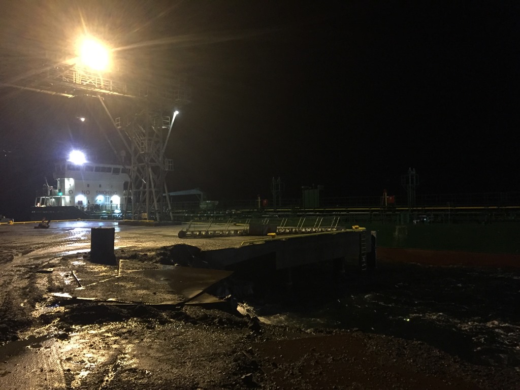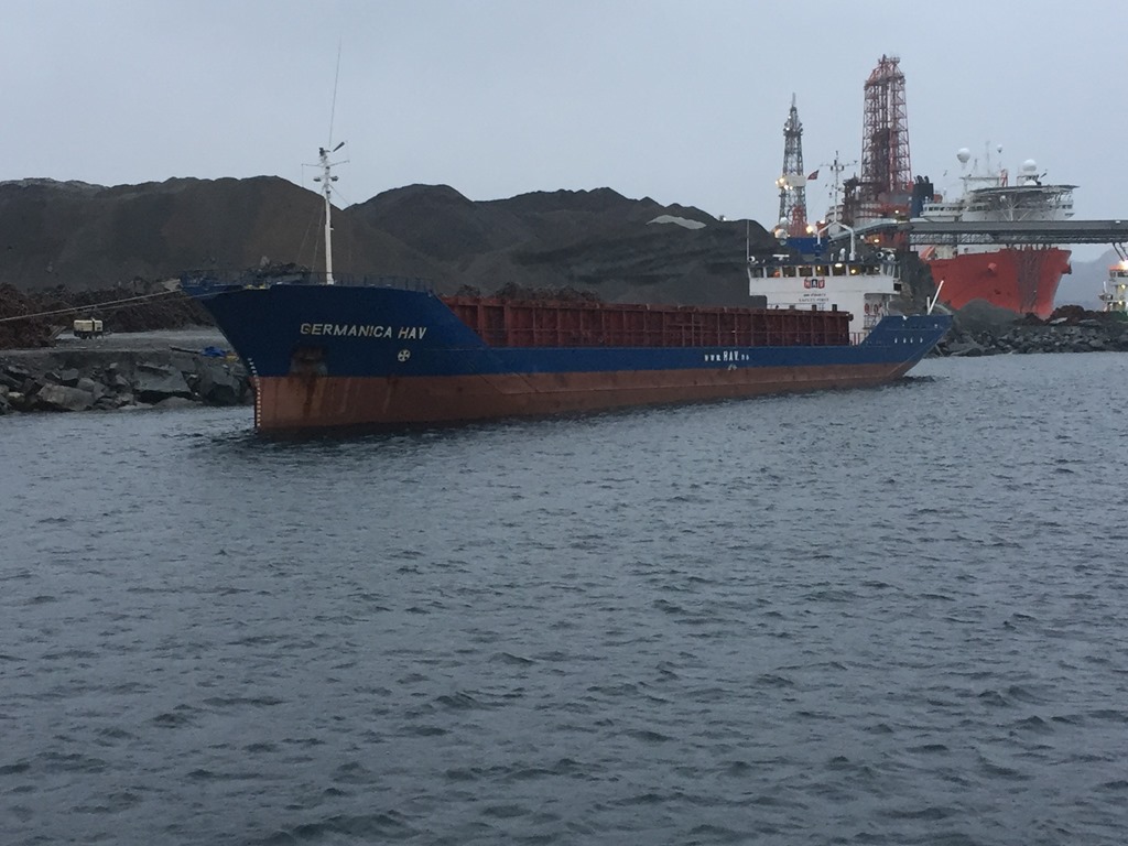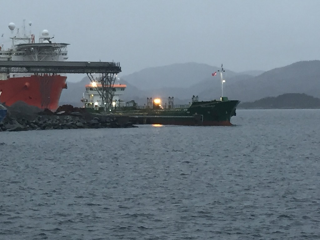 Under eftermidagen så ringer de från Skipavika och frågar om vi kan gå och hjälpa Thun Galaxy med förtöjningarna. Så vid 18 tiden när de skall avgå mot Färöarna så hjälper jag dem att släppa loss. Det blåser 22 m/s så det är ingen tur jag avundas dem.![]()