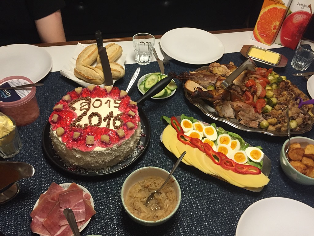 Till kvällsmat så blir det lite rester och en stor tårta.![]()