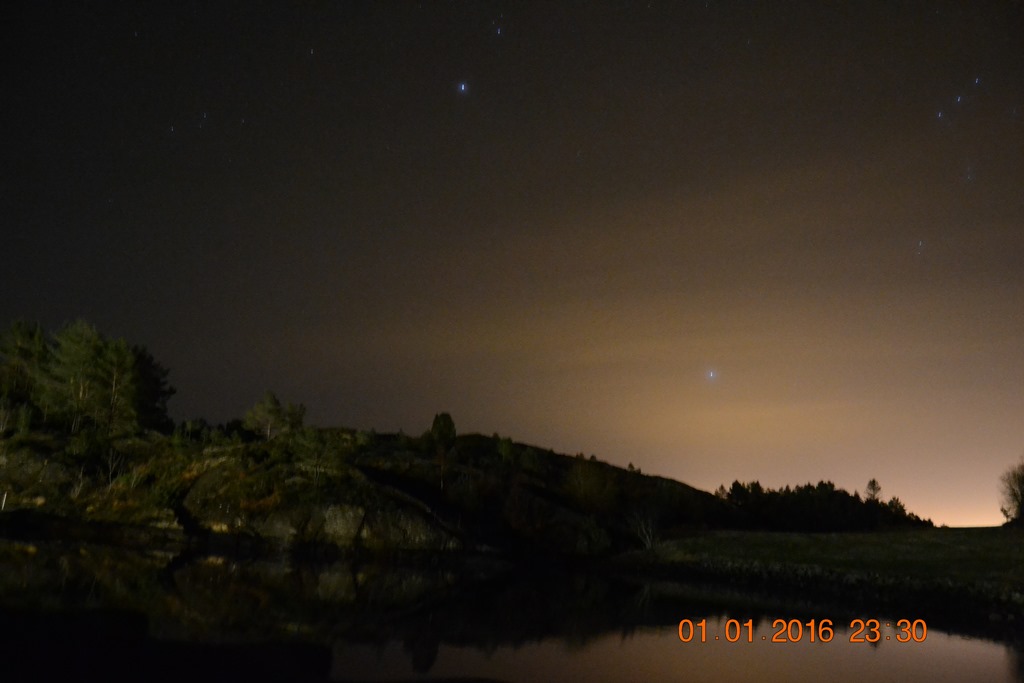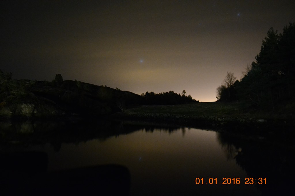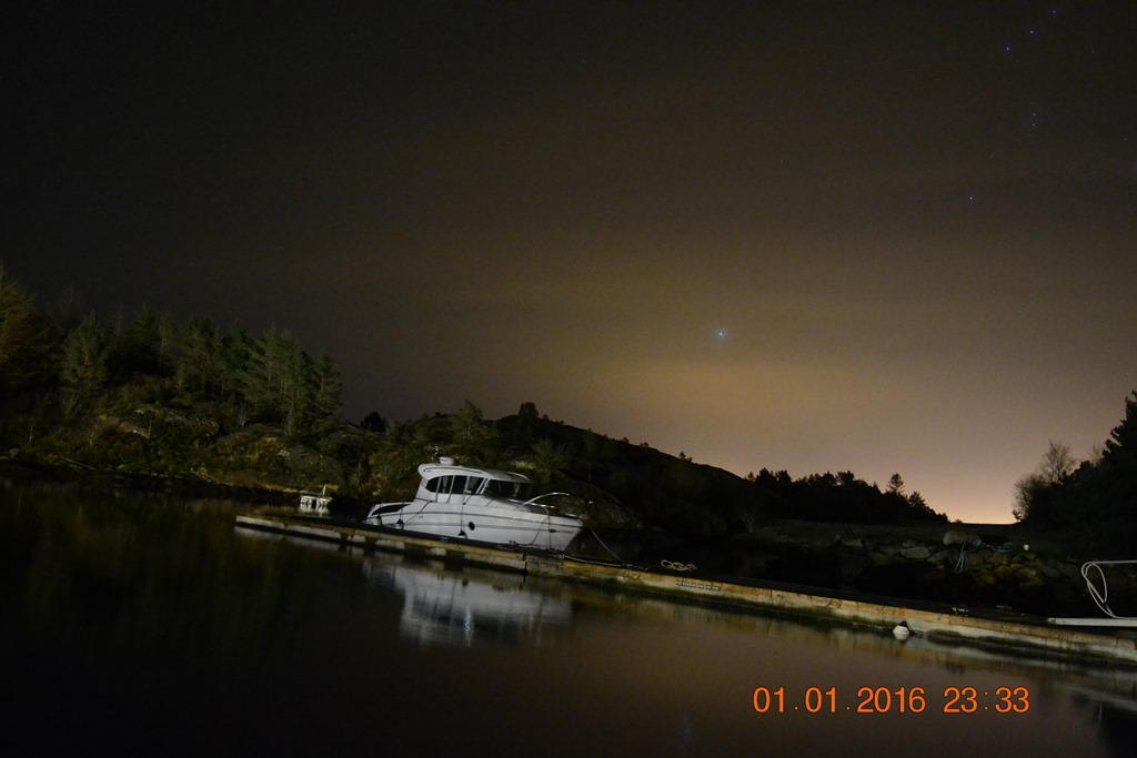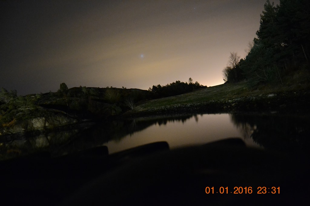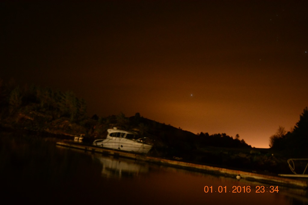 Ja jag orkade inte sitta uppe till midnatt igår eftersom det ösregna och var mulet. Så nu vaknade jag vid 7 tiden istället och gjorde mig lite kaffe. Var nästan vindstilla nu och +2 grader.