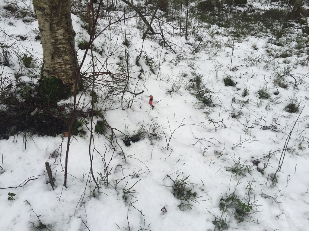 Efter frukost så åkte jag bort till FOK stugan för att provspringa H35 banan inför laxträffen. Det var ganska blött och kallt och inte lätt att hitta de små pinnarna.![]()
