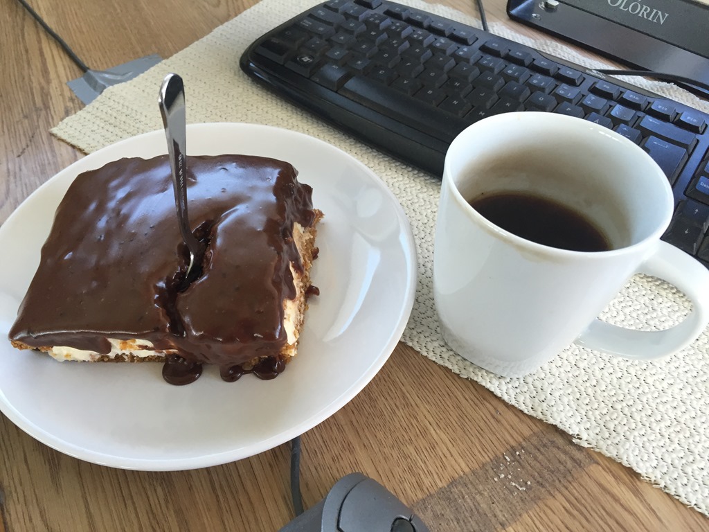 Till 10 kaffet så kommer kocken upp med lite kaka.![]()