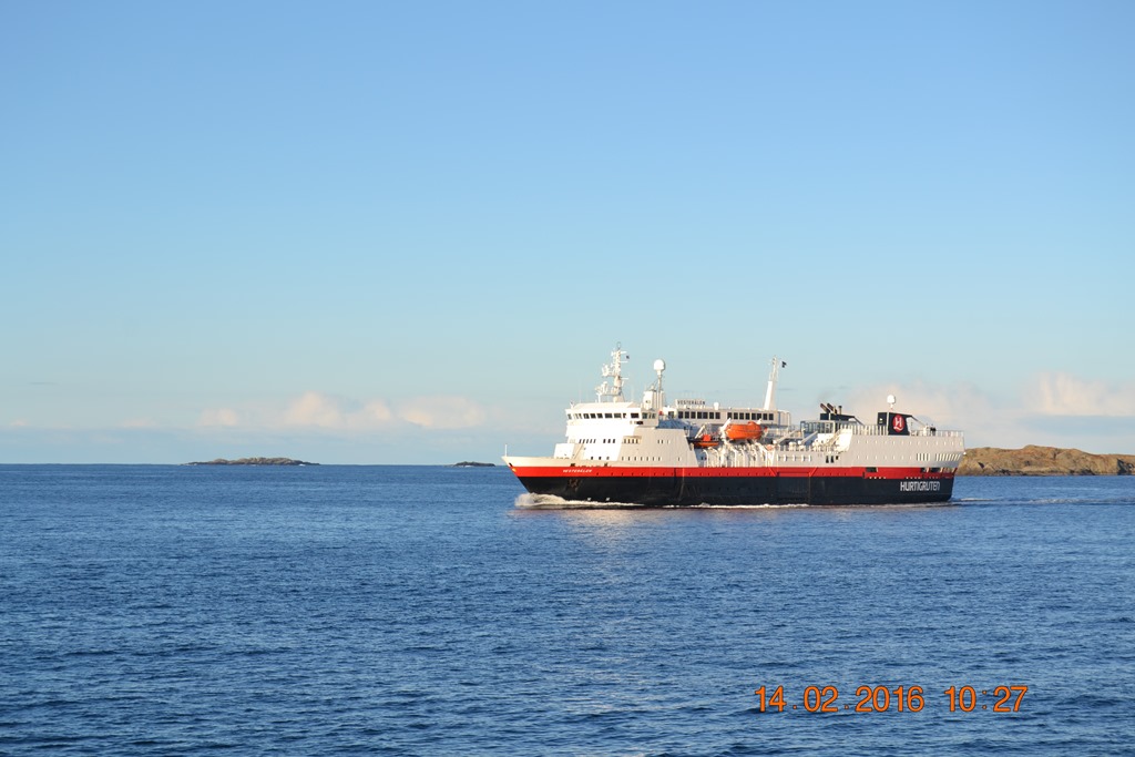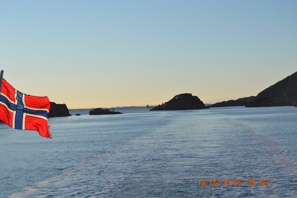 08:00 Efter frukosten så avgår vi från Skipavika och sätter kursen norrut genom Steinsundet.![]()