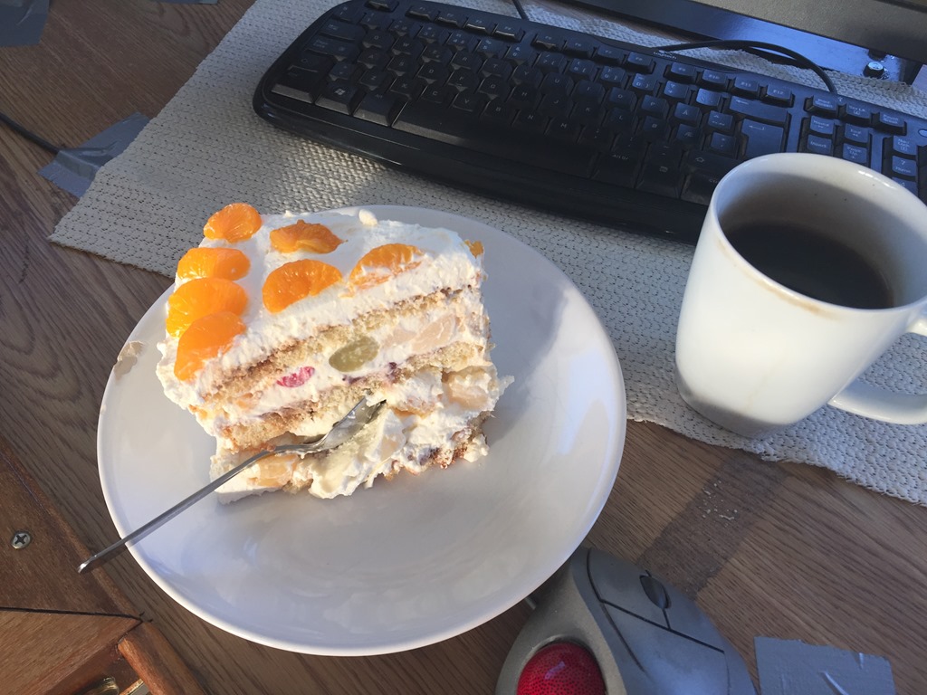 Till 10 kaffet så kommer kocken upp med lite tårta.![]()