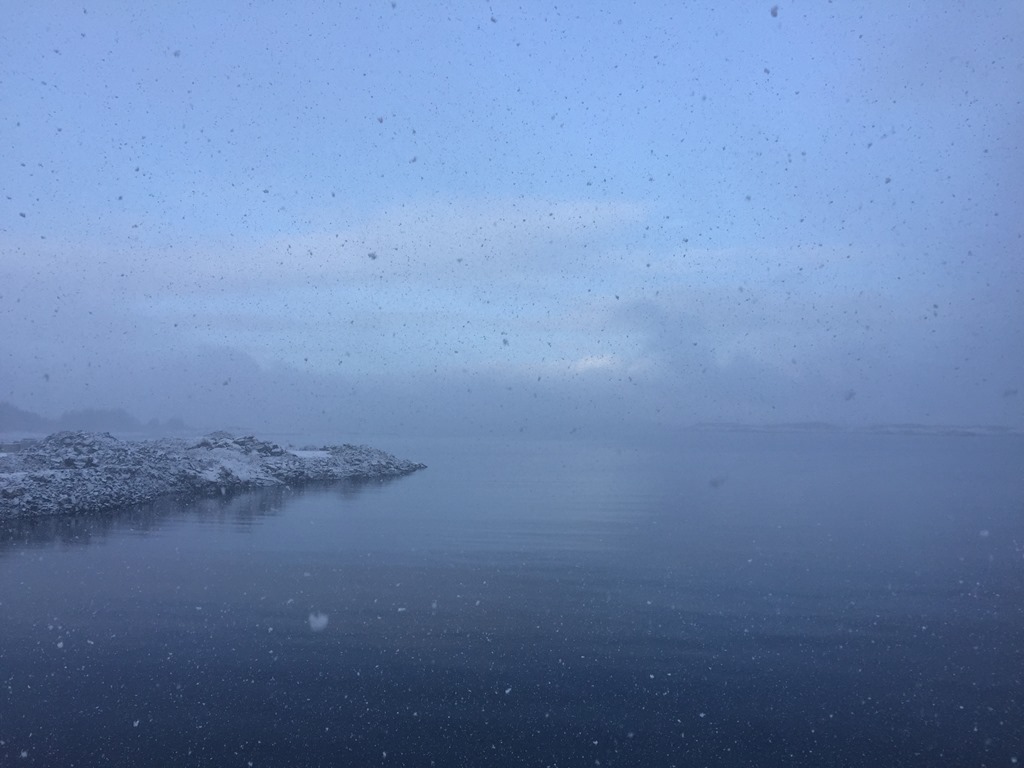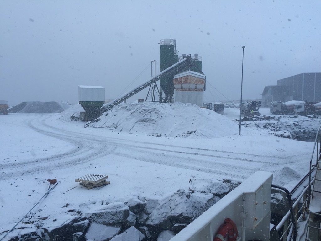 07:50 Påbörjar lossningen det är väldigt skiftande väder med både solsken och snöfall om vartannat.![]()