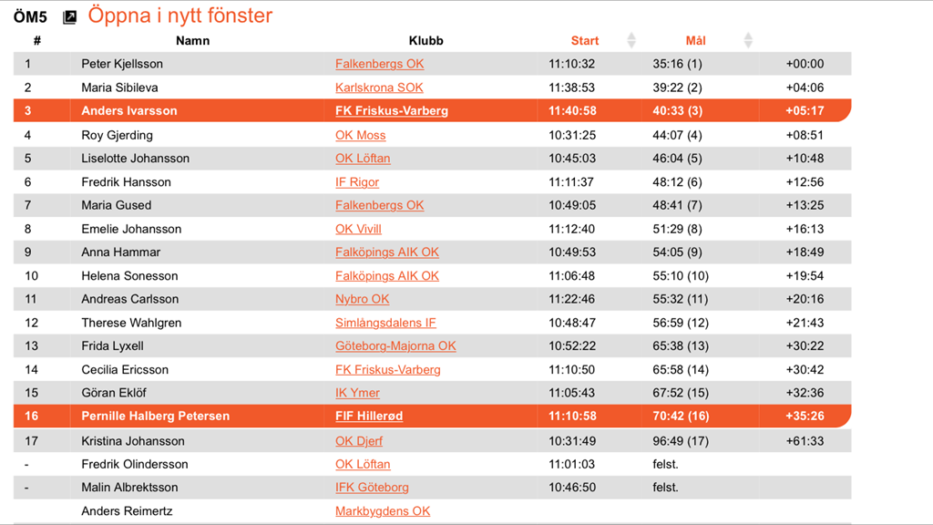 Valde en Ö5 bana eftersom jag är ganska otränad nu. Men det gick ju bättre än jag förväntat mig och jag vann.![]()