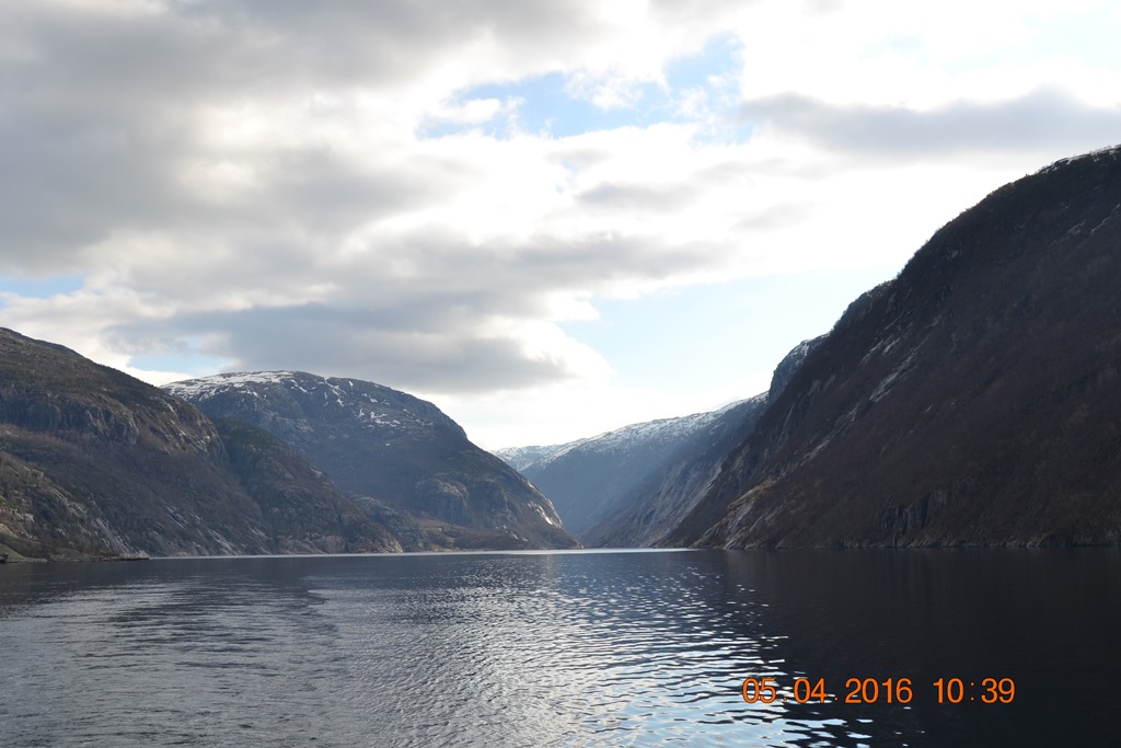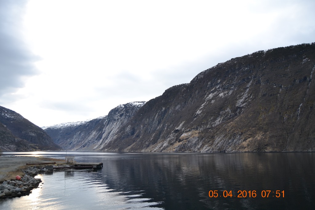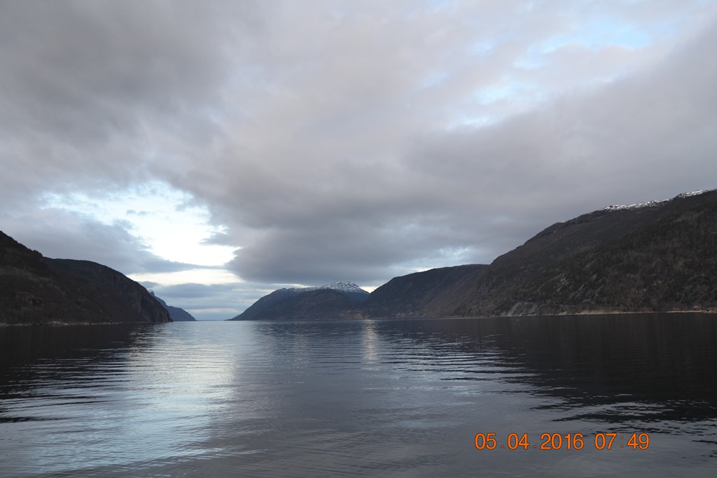 08:00 Kommer på vakt och sätter mig för att boka biljetter inför veckans avmönstringar. En helt underbar morgon här inne i fjorden.![]()