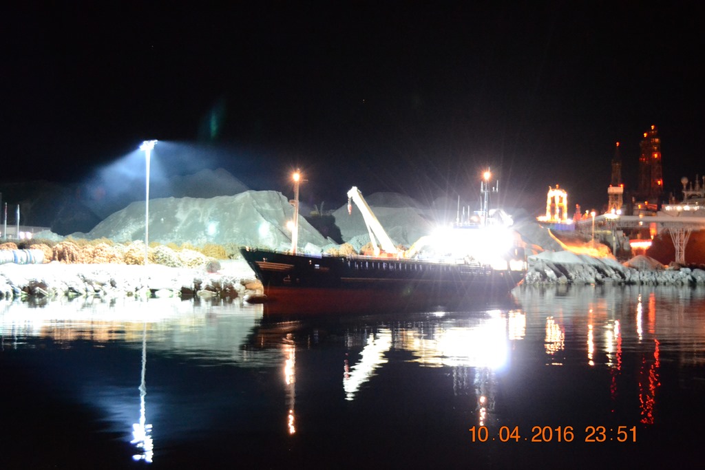Innan lunch så kommer Bulk Trans in för att hämta några paket, så vi passar på att besöka dem och prata med Svein och Harald.![]()