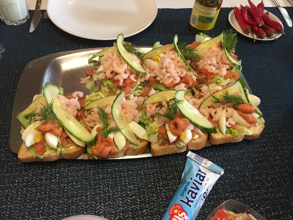 Hela dagen går och jag gör lite mer skolarbete. Till kvällen har Gregor gjort räksmörgåsar.![]()