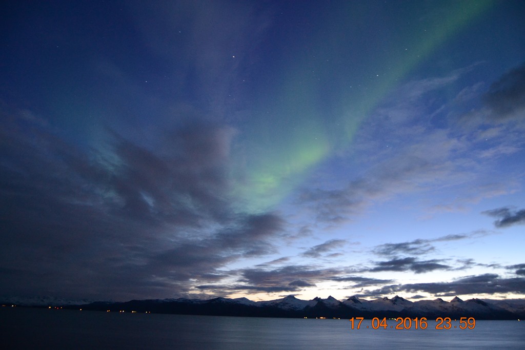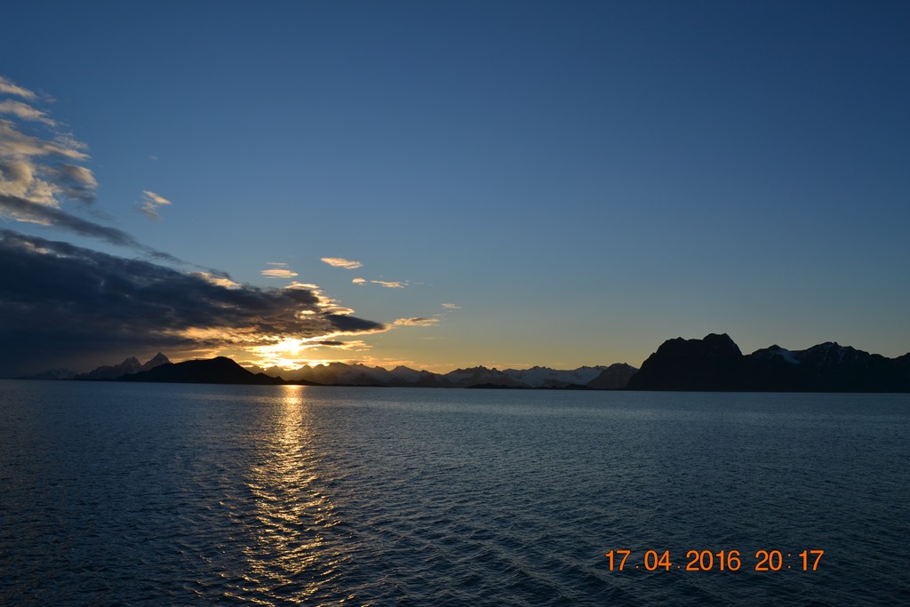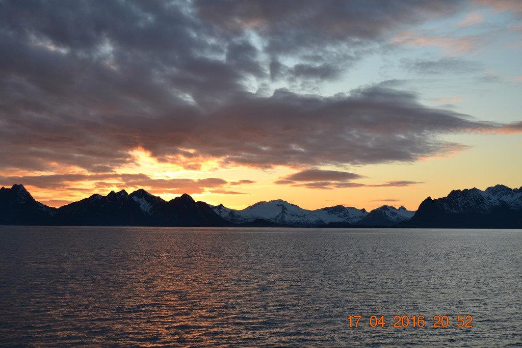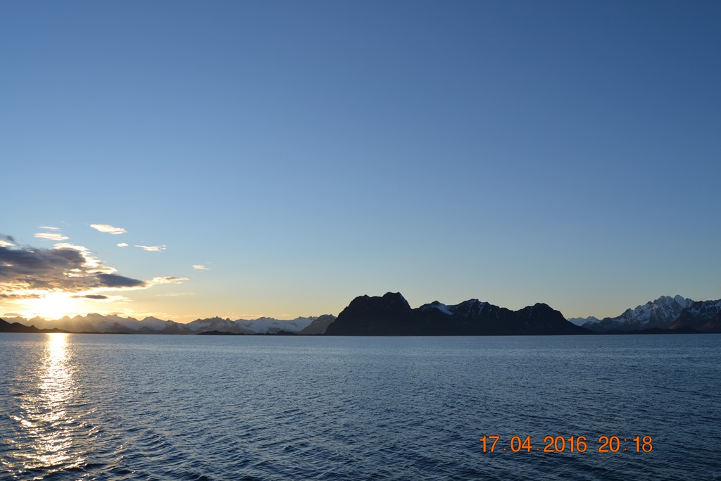 20:00 Kommer på vakt ute på Vestfjorden blir en fin kväl med solnedgång och lite norrsken.