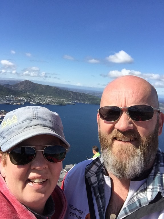 Vi tog Flöybanan upp till Flöyen och gick på en av de fina lederna. Blev även förfrågasd om vi ville prova på en liten orienteringskonkurense. Det tacka man ju inte nej till och laddade ner appen till telefonen så jag kunde hitta posterna. Man kunde vinna presentcheckar och även ett par skor.![]()