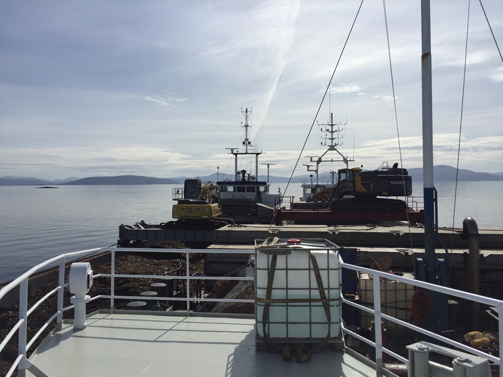 14:00 Går av vakten och de stoppar lastningen för att ta ombord mer tång från Taretrålarna.![]()