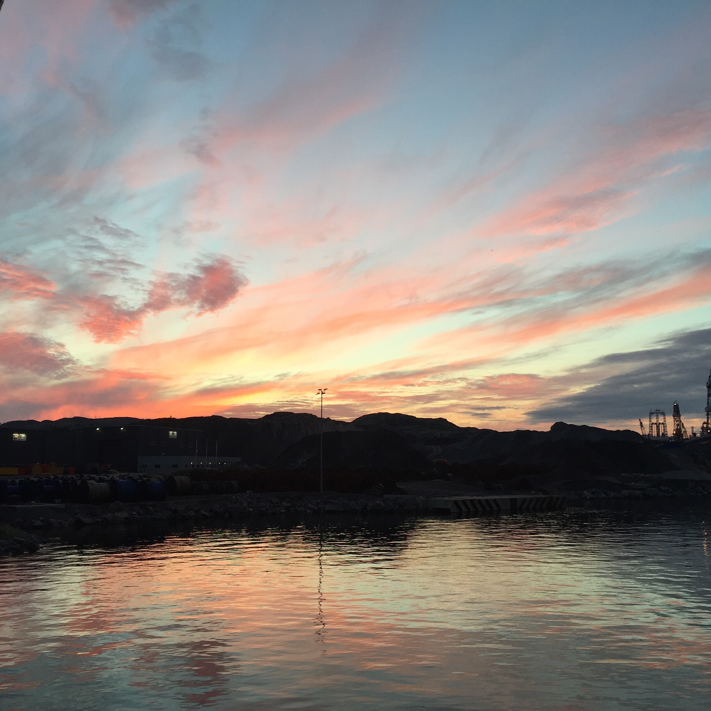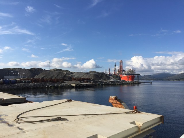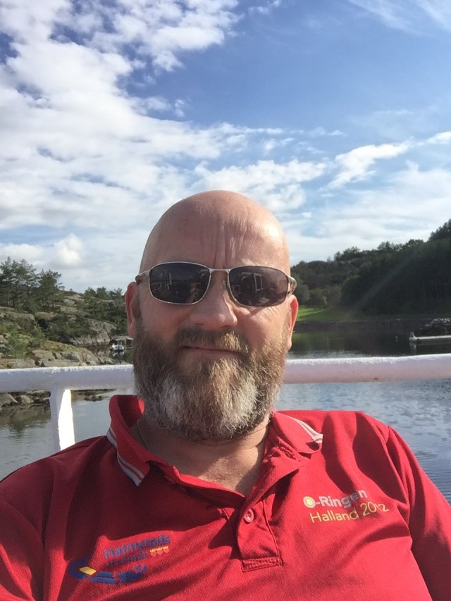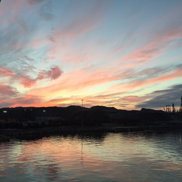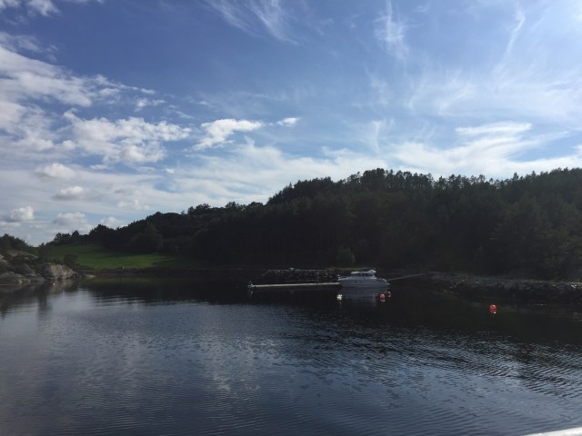 Vaknar lite senare och då är det fint väder. Tar lite kaffe ute på däck i solskenet.
