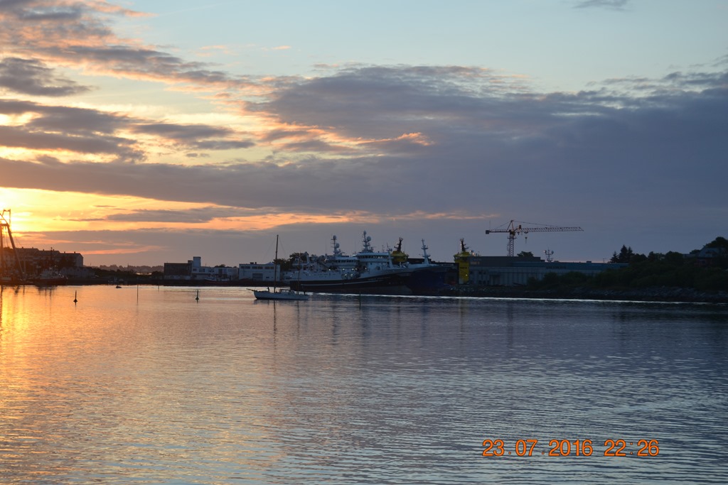 22:20 Förtöjda i Ålesund för bunkring, ser att en segelbåt har gått på grund strax jämte oss.![]()