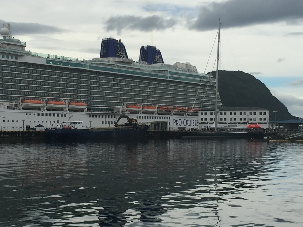 Vaknar till en småmulen dag med lite duggregn. Inga order ännu så vi gör lite olika arbete ombord och övningar. Cruisebåten Britannia kommer in och strax efter så avgår segelbåten Ganesha.![]()