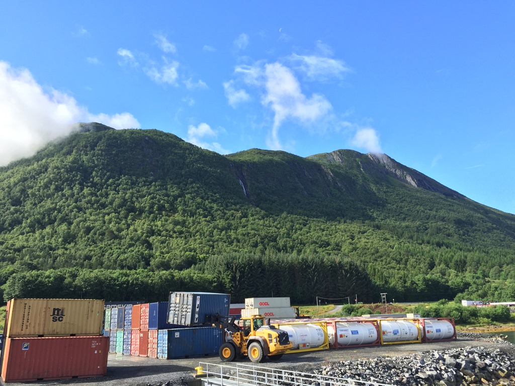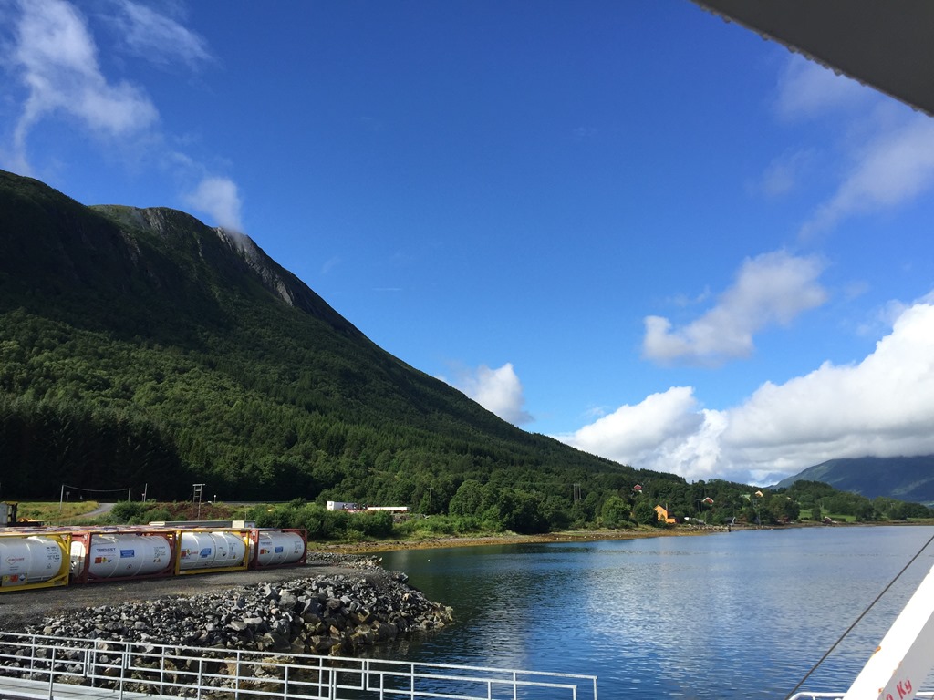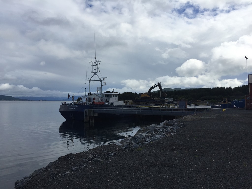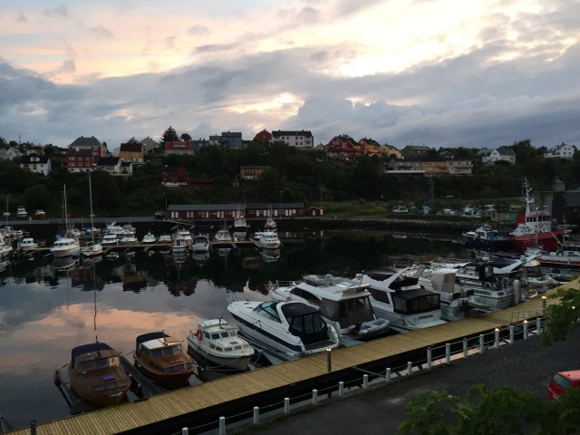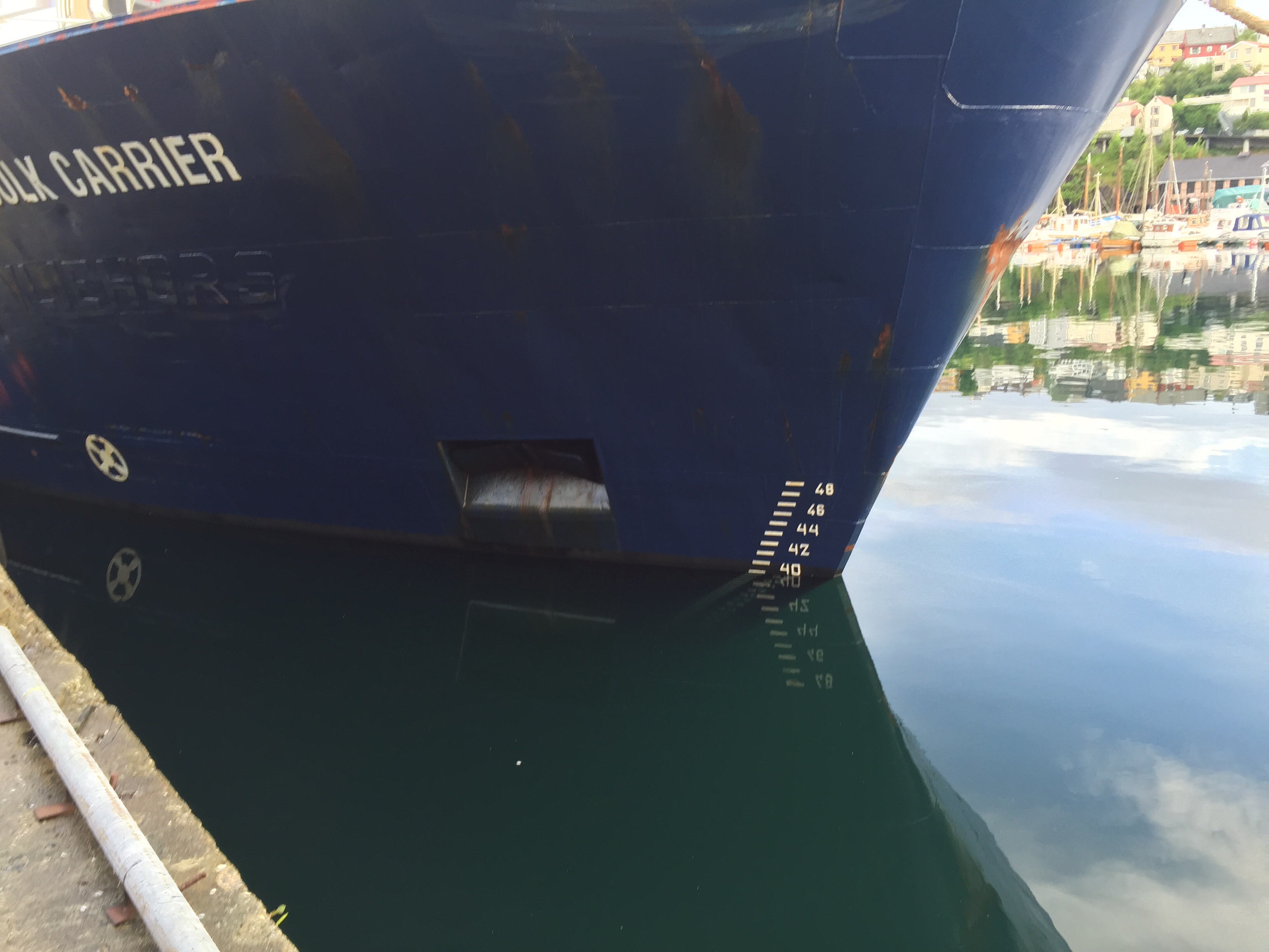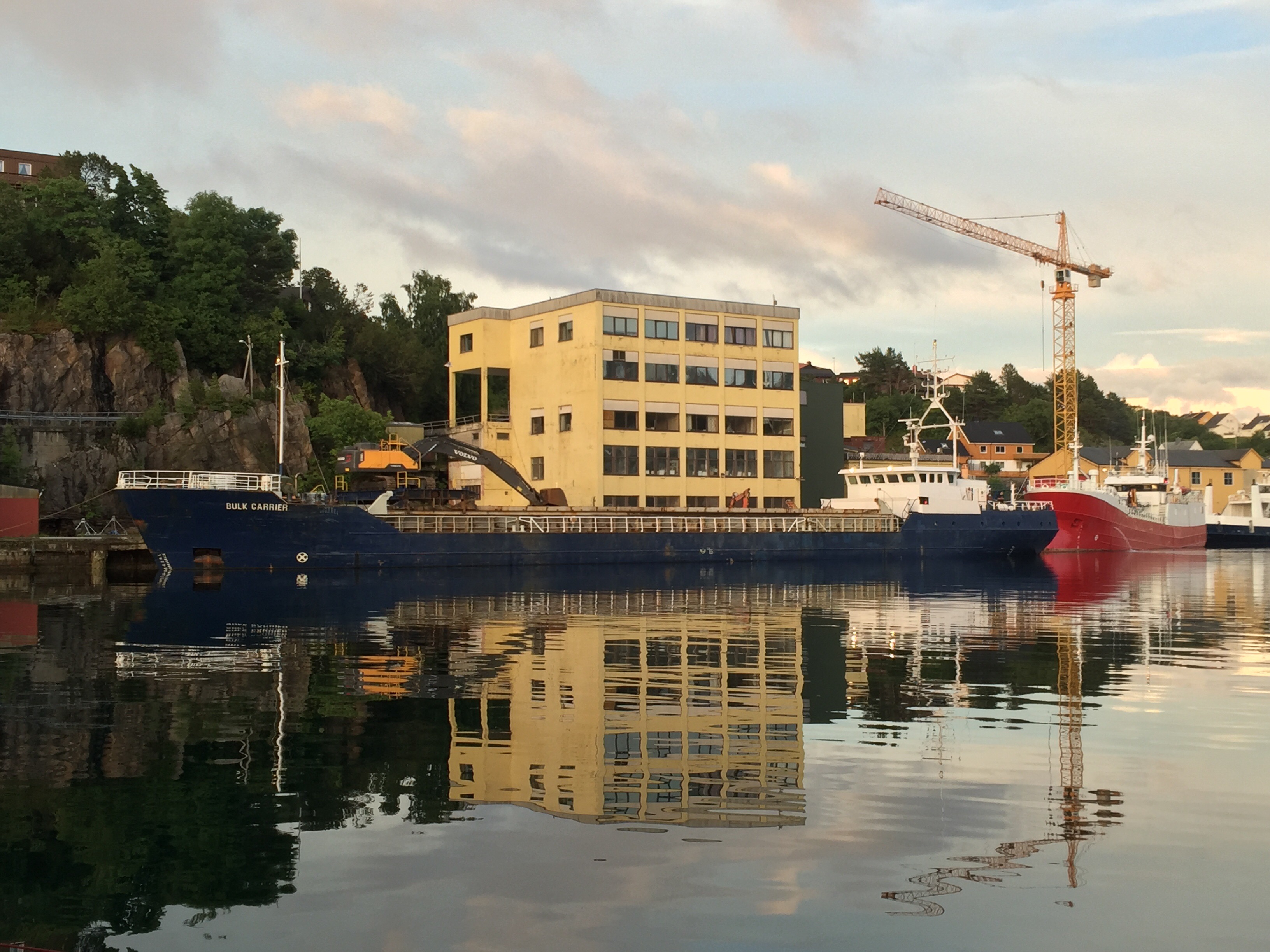 19:50 Förtöjda inne vid Kristiansund Mekaniska i ösregnet och i morgon skall de komma och titta på traversen som krånglar.