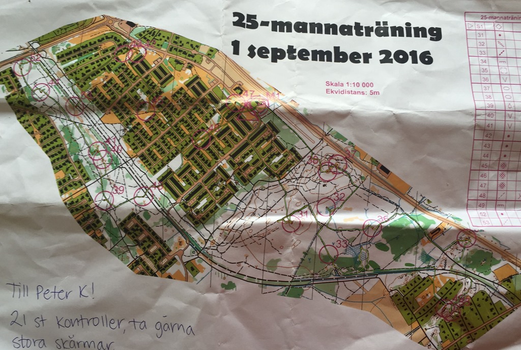 Efter frukost så körde jag bort till klubbstugan för att sätta ut kontroller till kvällens 25-manna träning. Blev 10 km löpning på 1:24. Sedan hem och duscha och äta lunch.![]()