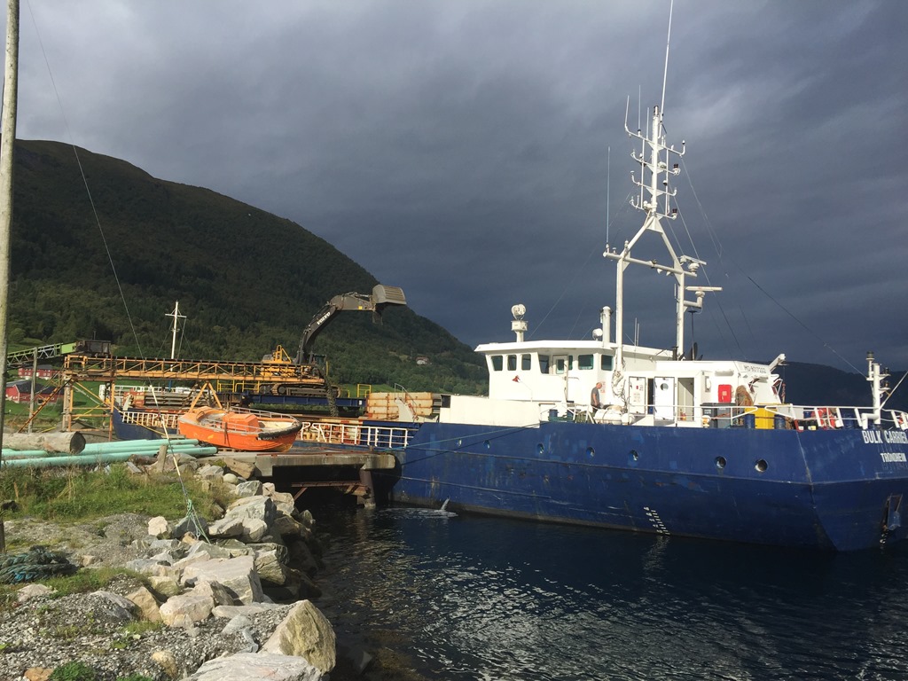 08:00 Kommer på vakt och vi närmar oss sakta Vistdal. Lägger oss stopp i fjorden och ser att Hopsfjord fortfarande lastar.