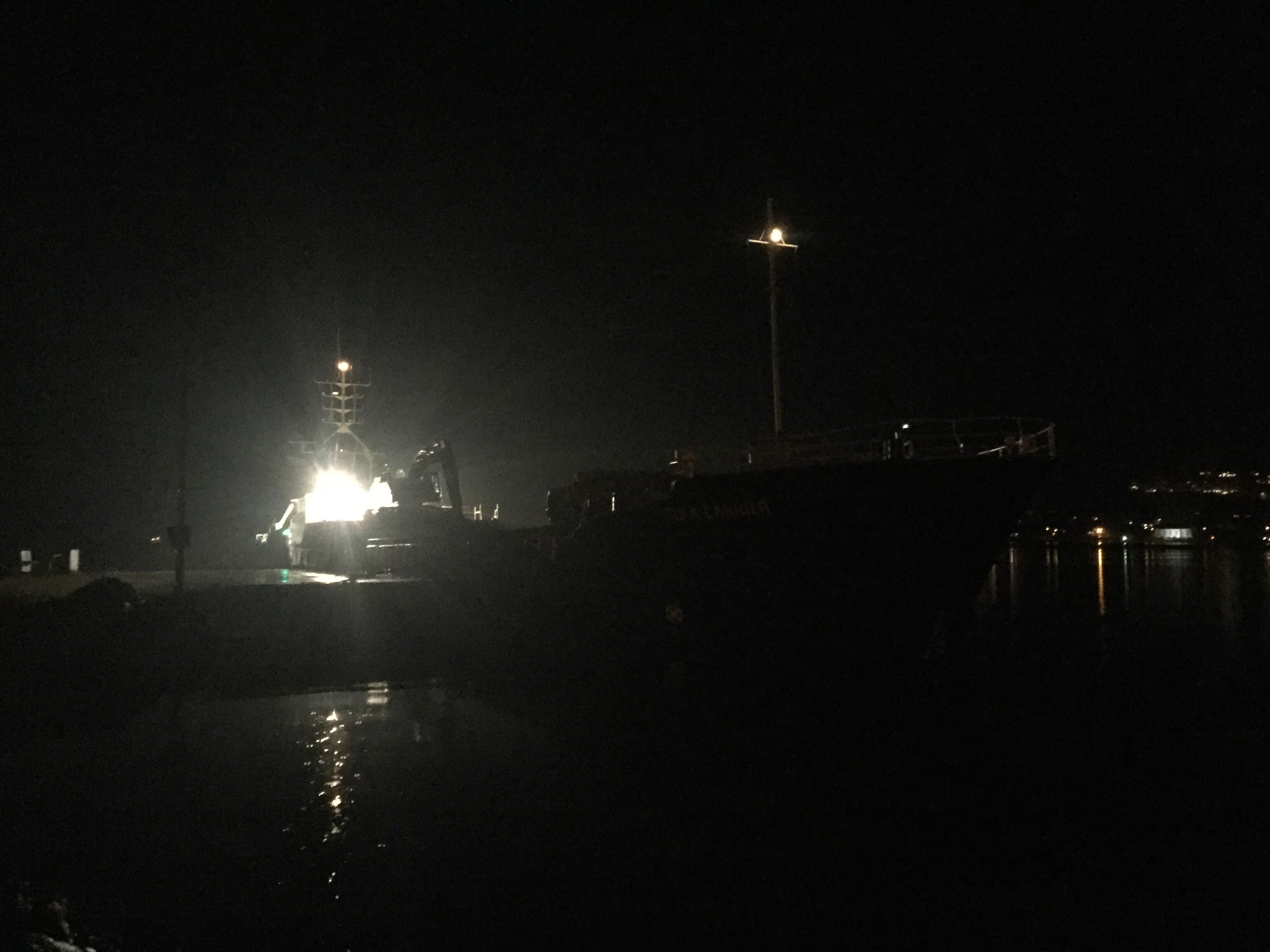 08:00 Kommer på vakt och vi är snart färdig lastade. Ingen bra början på dagen eftersom jag redan fått mig ett utbrott på idioten iland som lastar oss. Inte ofta jag blir så arg, så det var nog tur att han var i en hjullastare iland och inte ombord i båten.