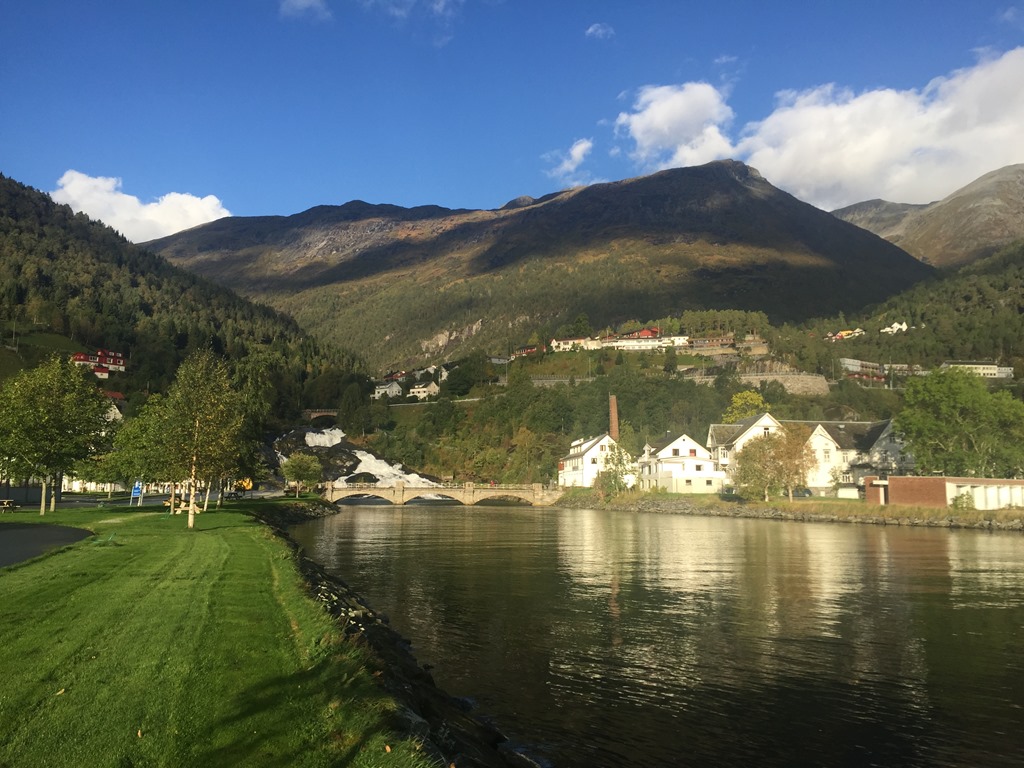 07:05 Förtöjda vid färjekajen i Hellesylt. Men när lastbilarna kommer så säger de att vi skall ligga på Cruisebåts kajen.