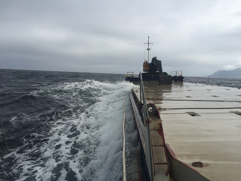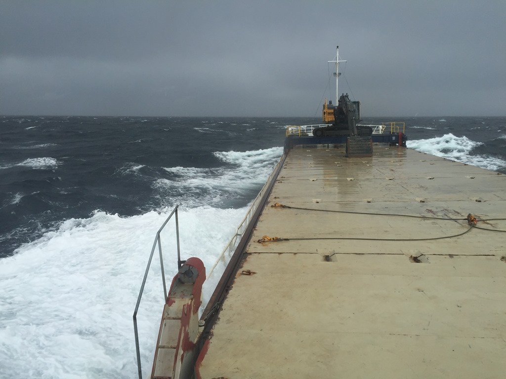 08:00 Kommer på vakt vid Oksebåsen norr om Ålesund och fortsätter norrut. Kommer ut på Hustadvika och det blåser ca 10-15 m/s sydvästlig så vi får vind och sjö med oss.![]()