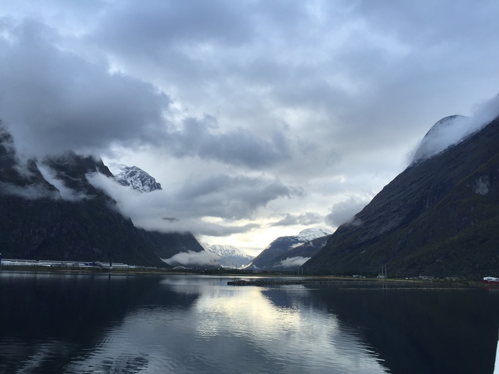 08:00 Kommer på vakt och sätter mig med lite papper inför avmönstringen. Stilla men kalt väder idag +5 grader och snön har kommit på fjälltopparna.![]()
