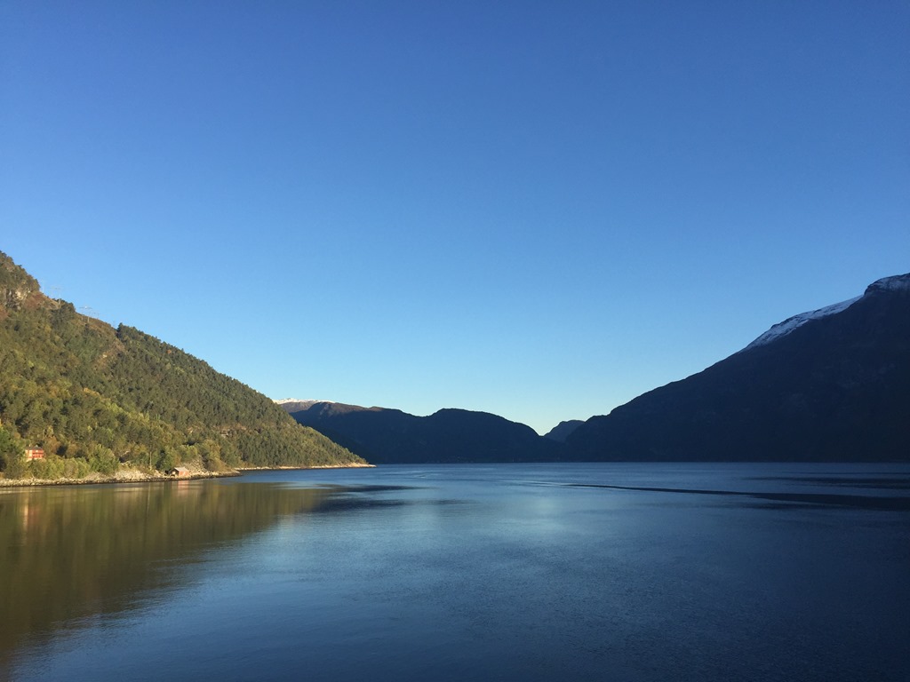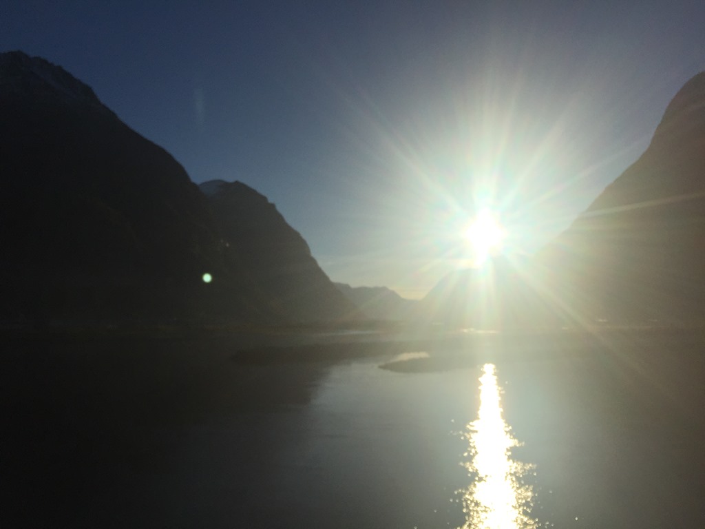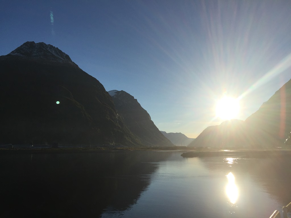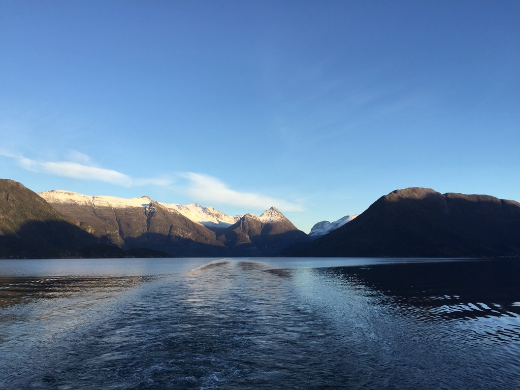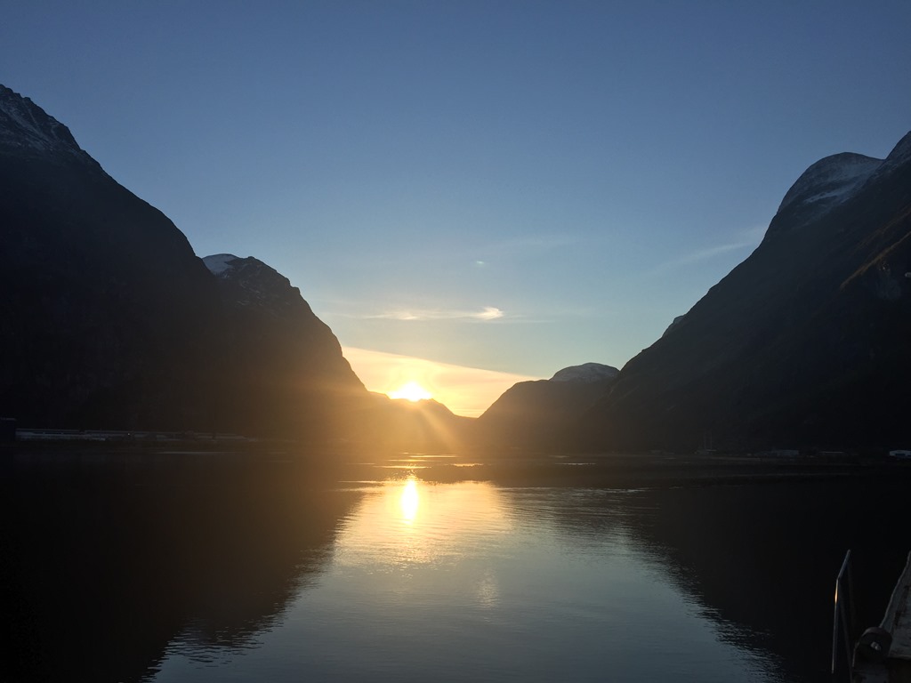 16:55 Avgår från Sunndalsöra och sätter kursen mot Ålesund med reducerad fart för att vara framme klockan 7 i morgon.