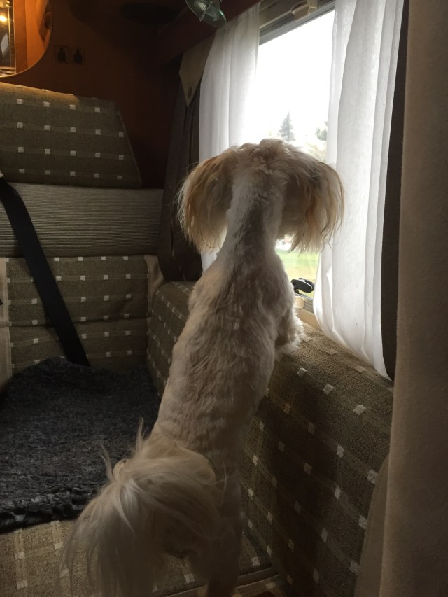 Vaknade och gick en runda med Chili. Sedan åt vi frukost medan hon spanade ut genom fönstret.