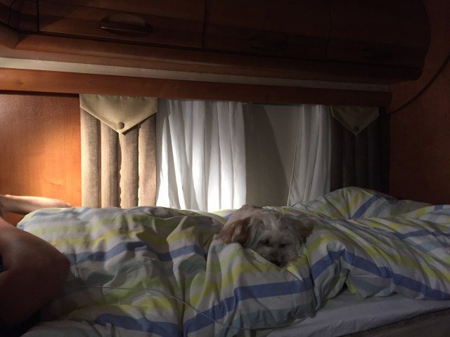 Sedan blev det en lugn kväll med lite tv och vin. För att sedan försöka sova för första gången i husbilen.