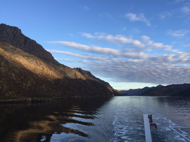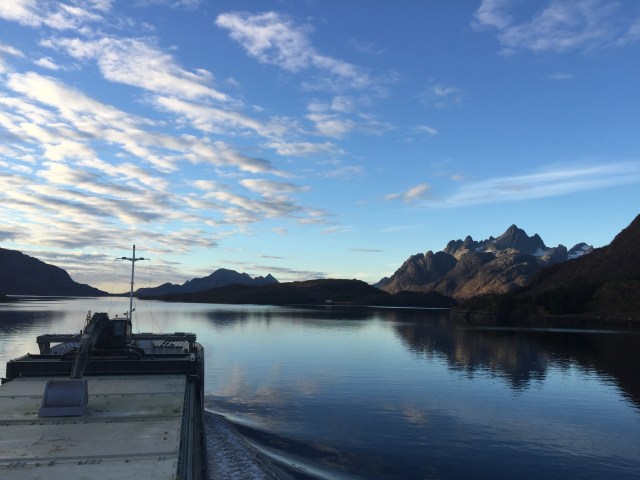 08:15 Färdig lastade och avgår. Går ner genom Raftsundet i strålande väder.