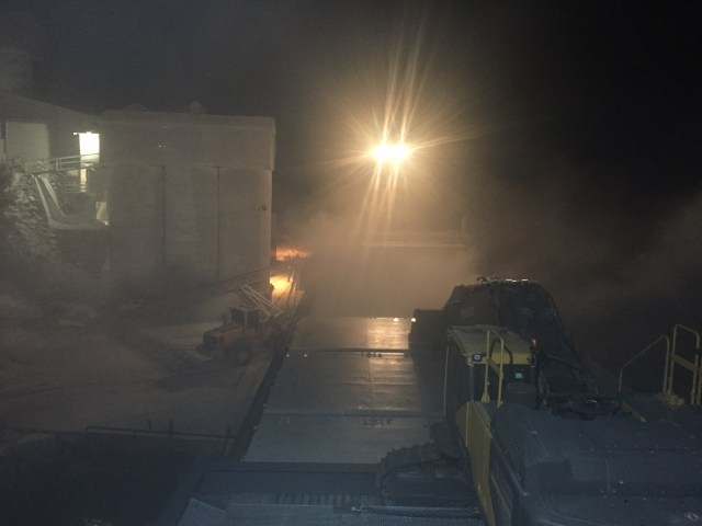 Strax efter midnatt får vi besked att det skall komma en containerbåt, så vi får flytta till nordänden av kajen.