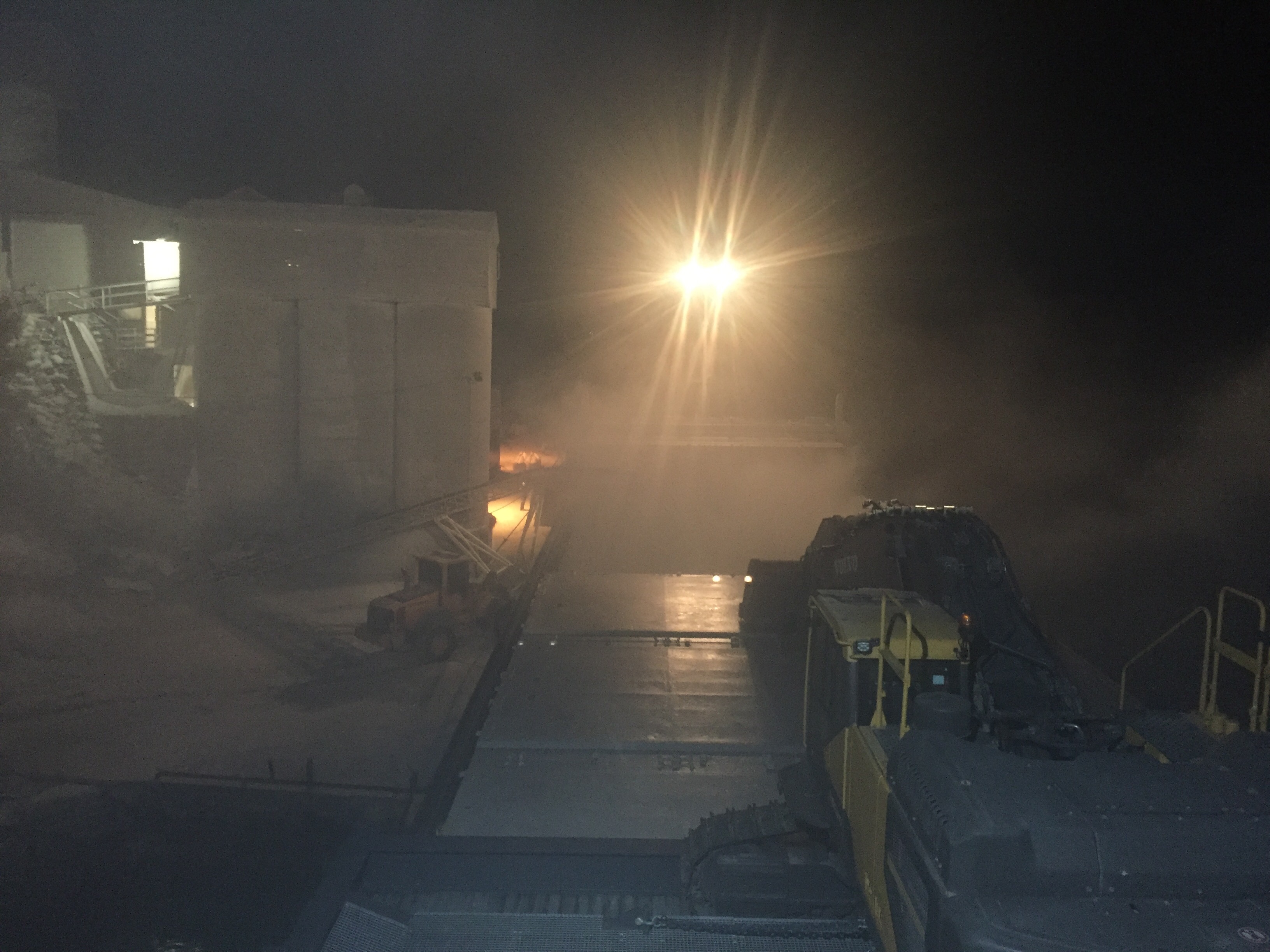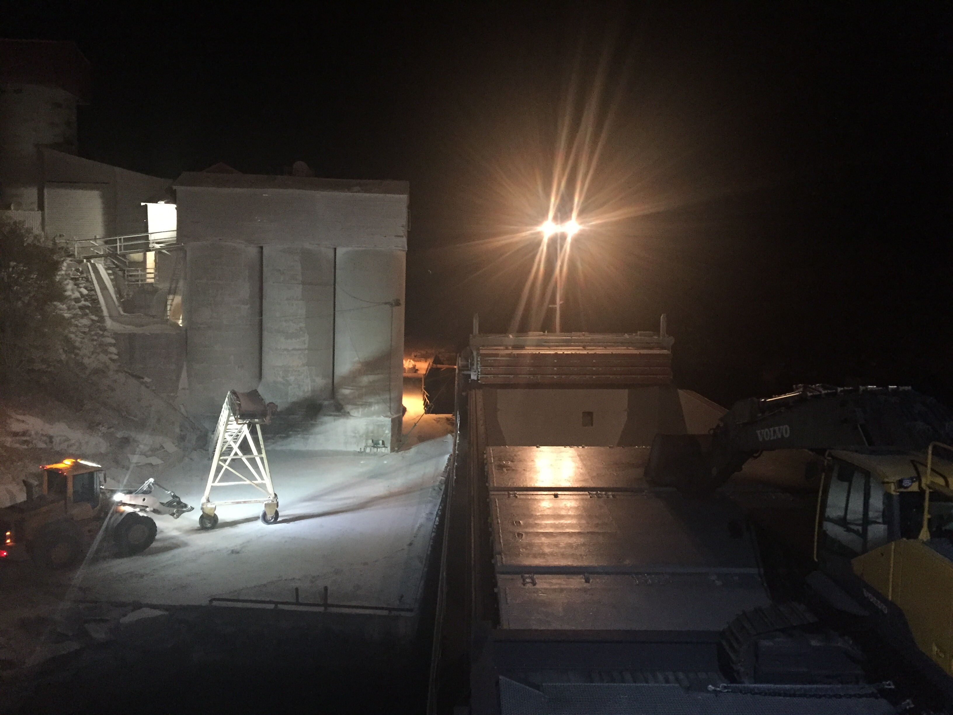 21:50 Förtöjda på Larsnes för att lasta kalk. Är väl en av de större båtarna som varit inne här.