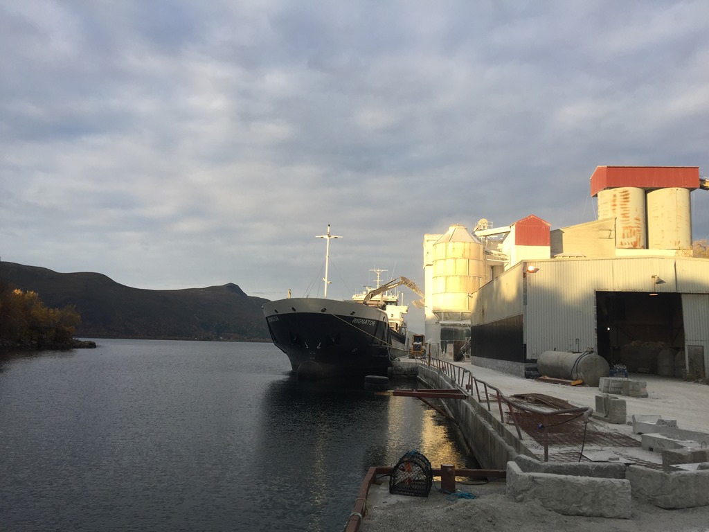 08:30 Vi förhalar lite och påbörjar lastning av grovkalk och bigbags med kalk.