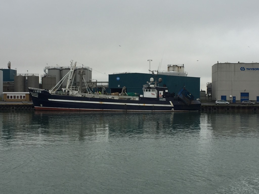 07:55 Förtöjda på Limfjordskajen i Thyborön för att lasta. Lotsen går iland. Jag sätter mig och börjar göra klart alla tullpapper för anlöp i Norge. Sedan går jag en runda in till Thyborön och tittar på båtar.![]()