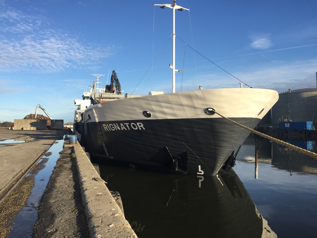 09:00 Förtöjda vid kaj i Ålborg och gör klart för lossning. Riktigt fin söndagsmorgon.![]()