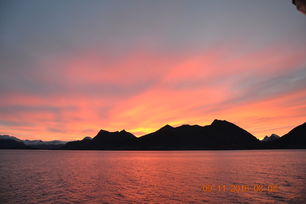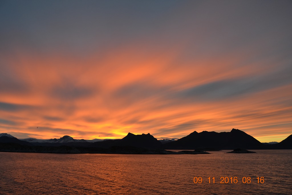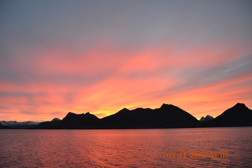 08:00 Kommer på vakt syd om Bolga och det är en fin soluppgång över Svartisen.![]()