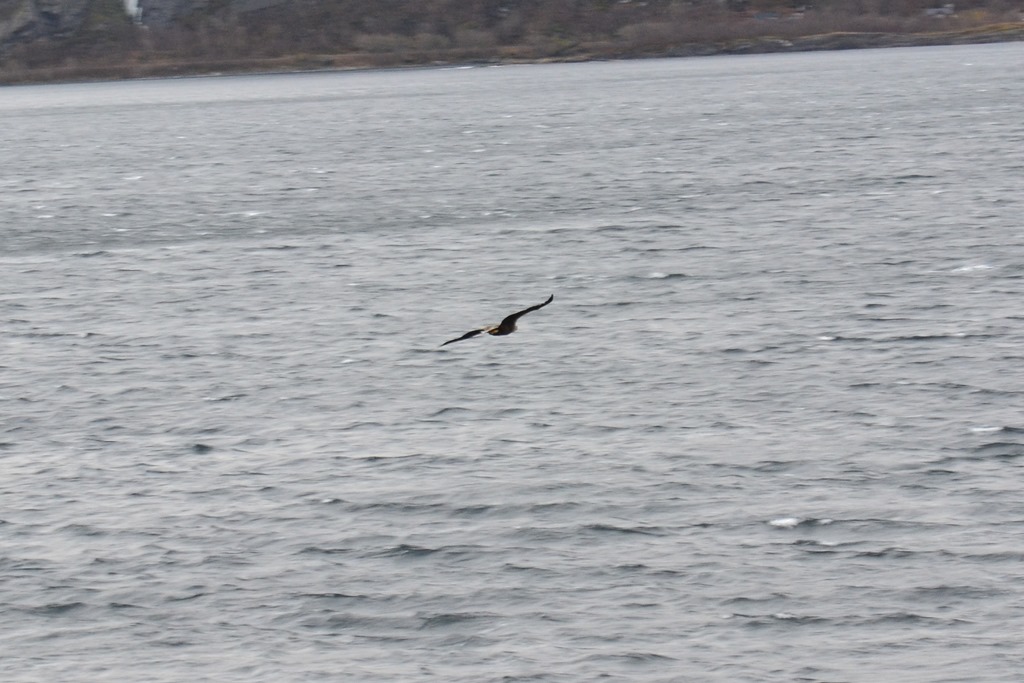 Får stå på bryggan hela tiden och vakta med propellern tillkopplad. Kommer en havsörn och flyger förbi. Ja det blir ju inga jättebra bilder…![]()