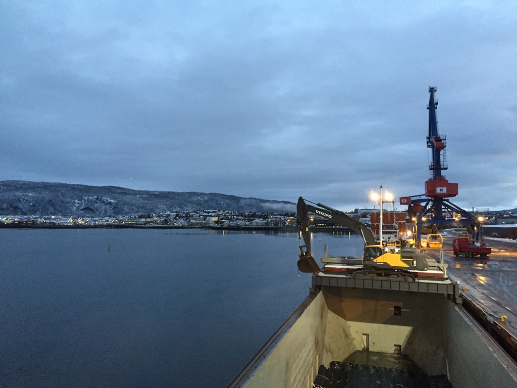 07:30 Kommer upp och äter frukost och går sedan för att se hur det går med lastningen. Det har blivit lite kallare inatt och även snöat lite. Ringer och pratar med agenten i Oslo och hör hur länge de räknar med att lossningen skall ta.![]()