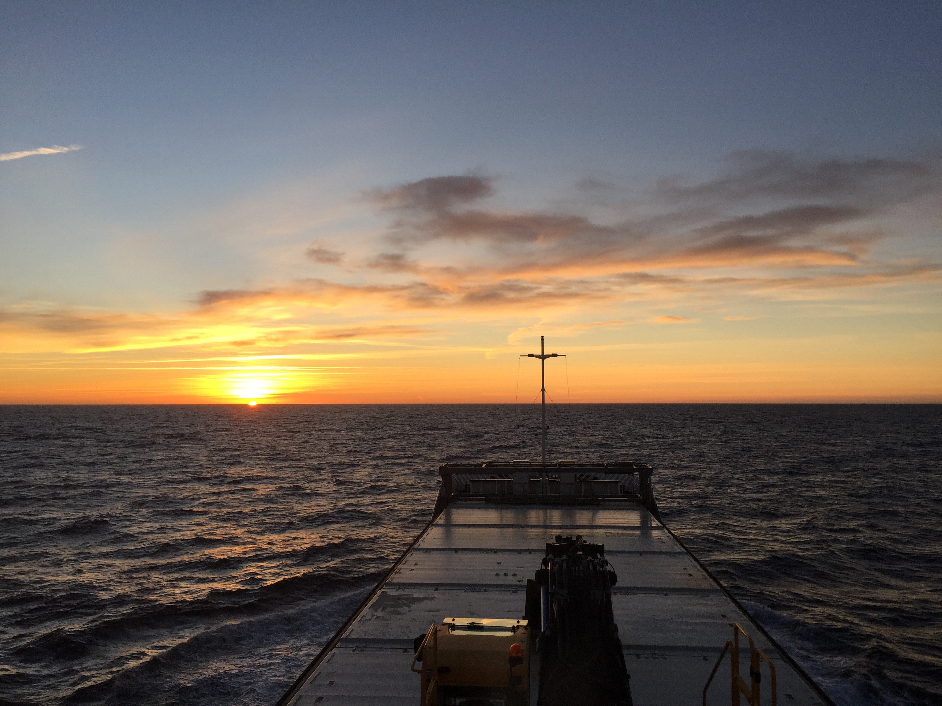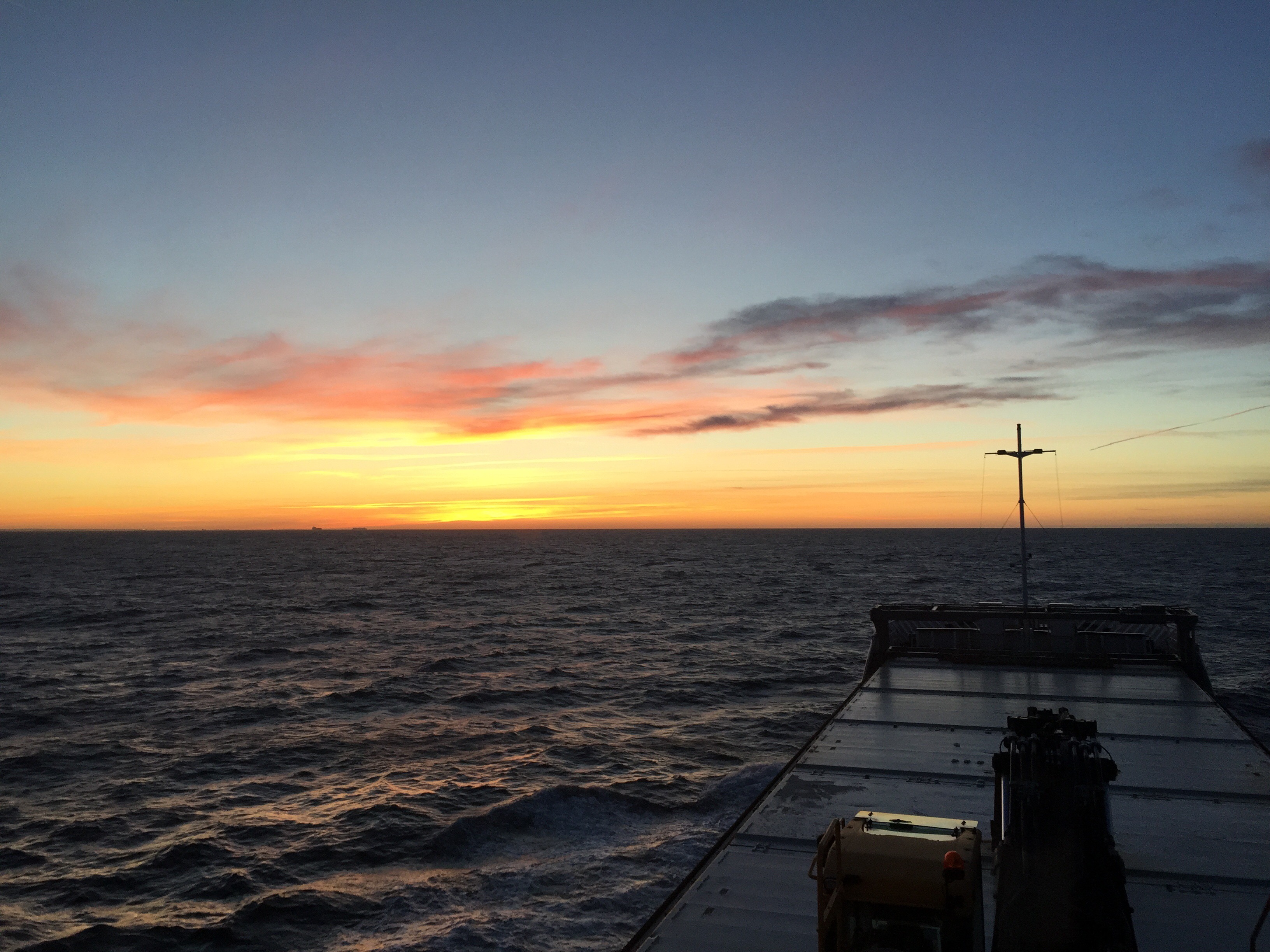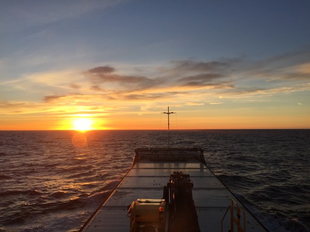 08:00 Kommer på vakt väst om Vinga och solen är på väg upp.