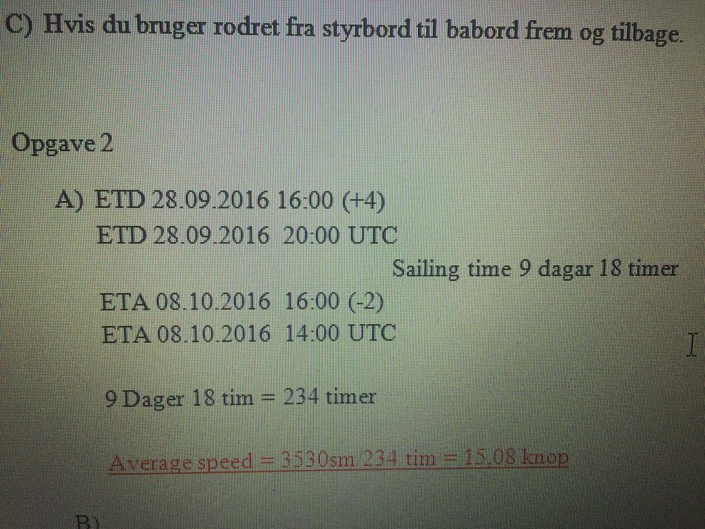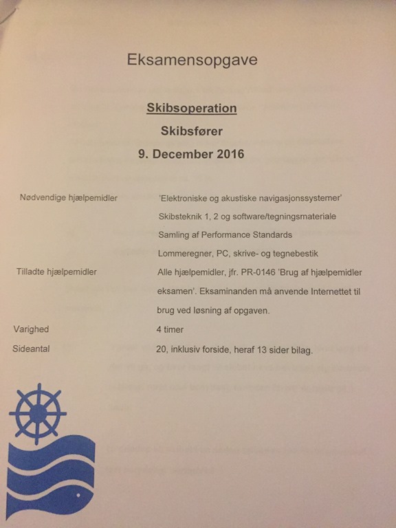 08:00 Examen i Skibsoperation börjar och första uppgiften är en som jag gjort en excel formel till så det är bara att skriva in talen och så kommer siffrorna fram om båtens Squat. Det vill säga hur mycket båten sugs ner i vattnet vid olika farter och olika djup.