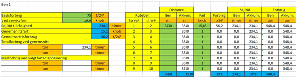 Sedan får jag använda ytterligare en av mina excelformler för att beräkna bränsleförbrukning om man sänker hastigheten med 1,5 knop.![]()