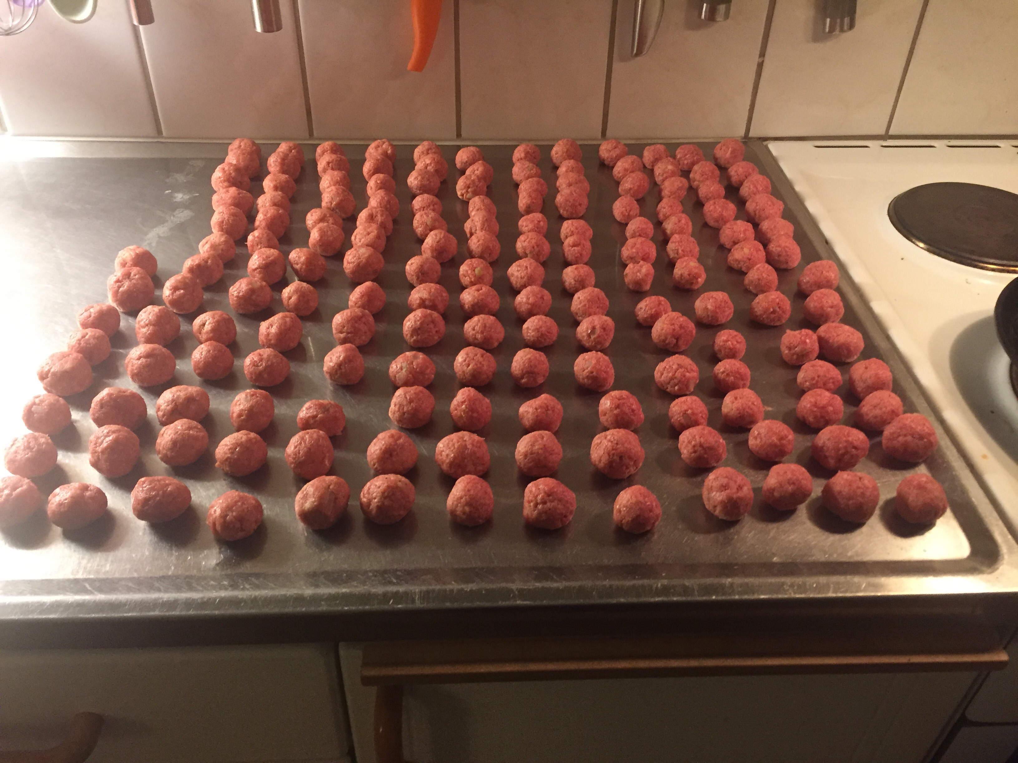 Till kvällen så gjorde jag julköttbullar. Det blev 160 stycken.
