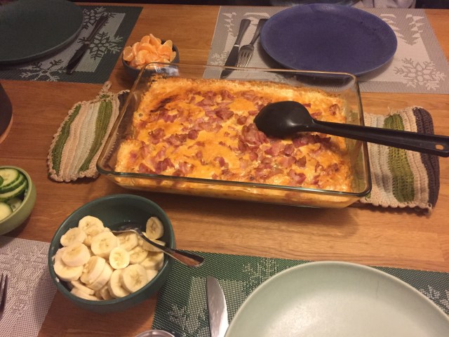 När jag kom hem så åt vi lite lunch och jag började koka skinka och rullsylta. Blir gott doppespad till julafton.
