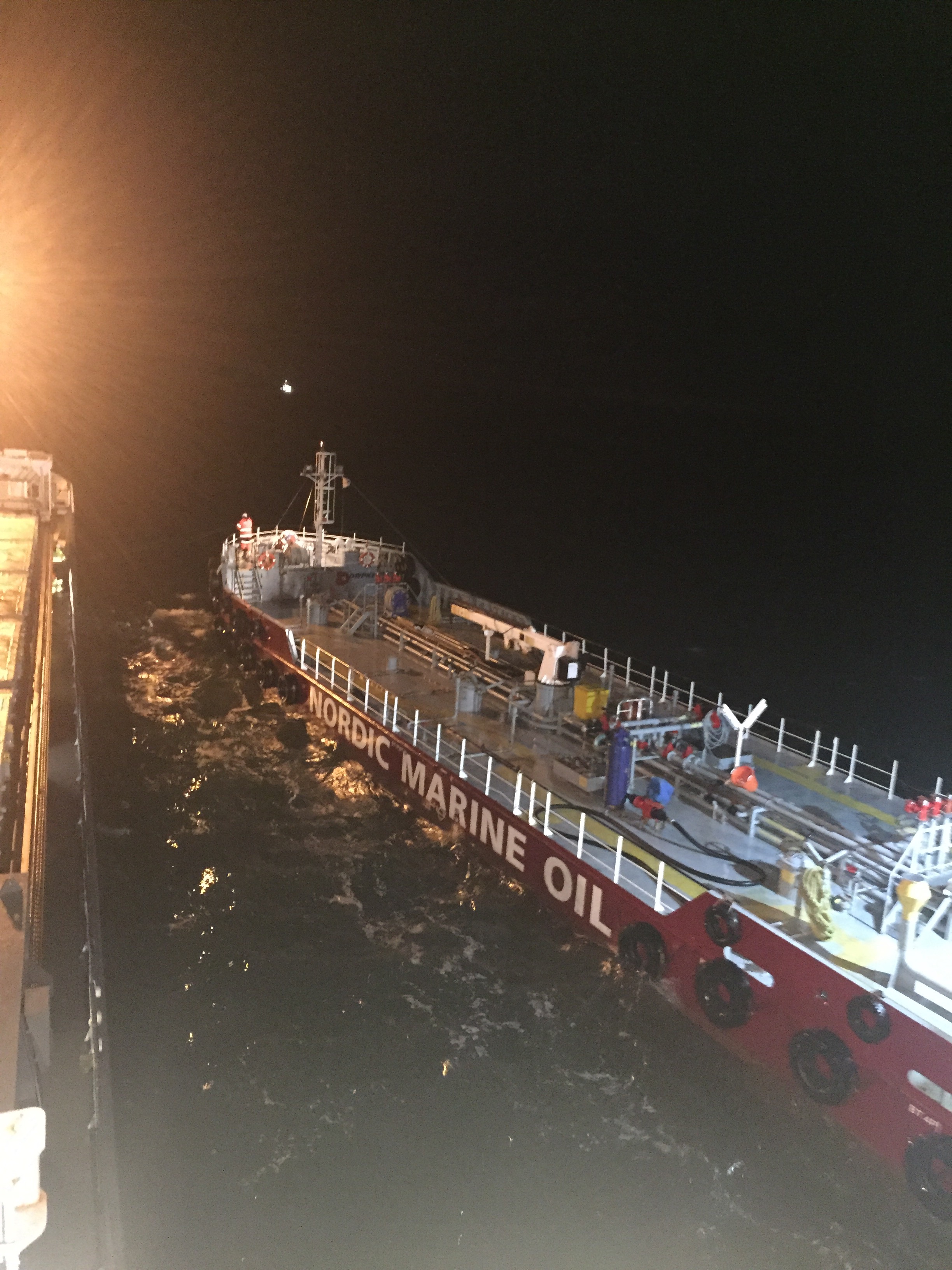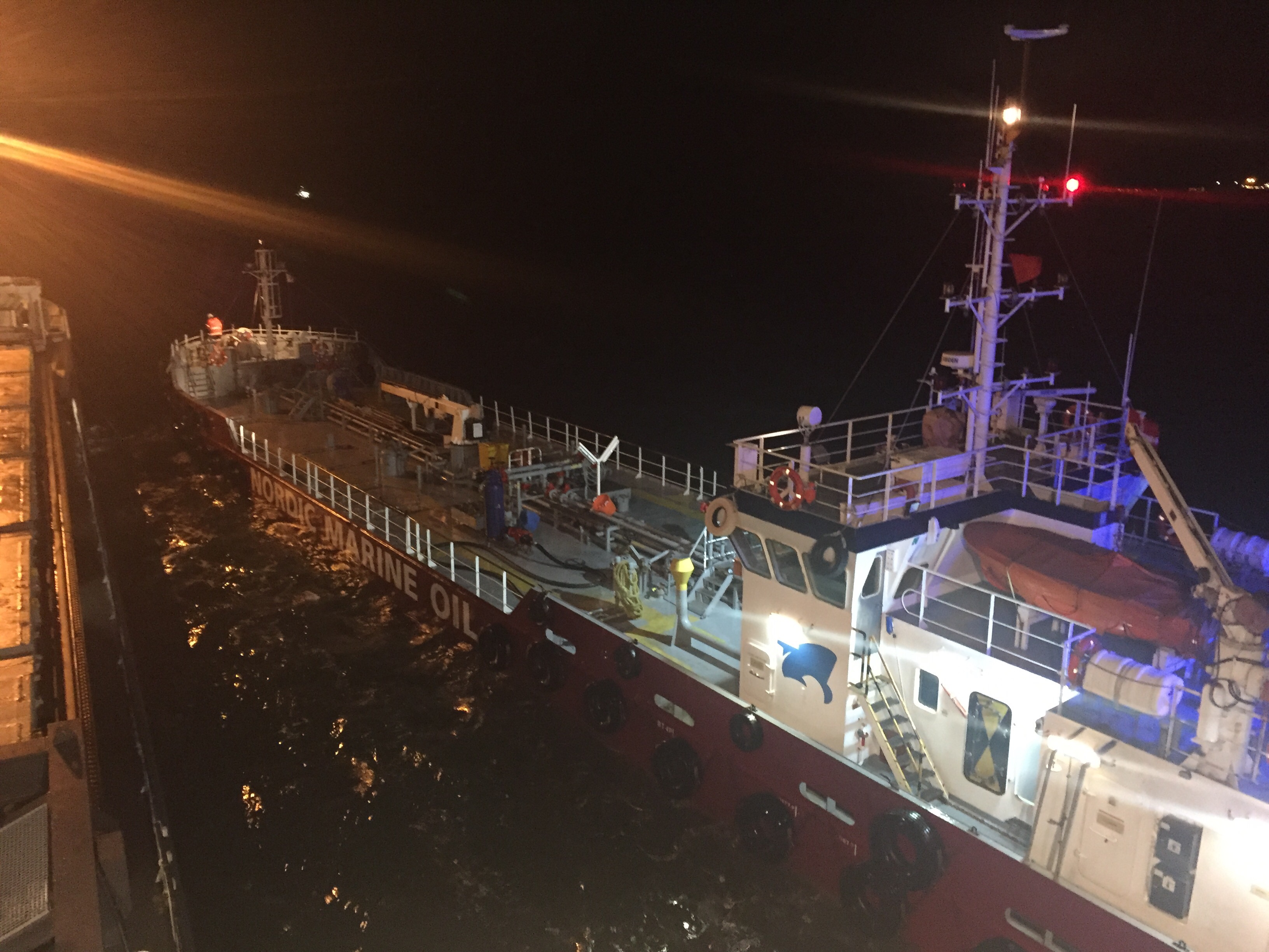 23:25 Bunkring avslutad och de avgår sedan börjar vi lätta ankare.