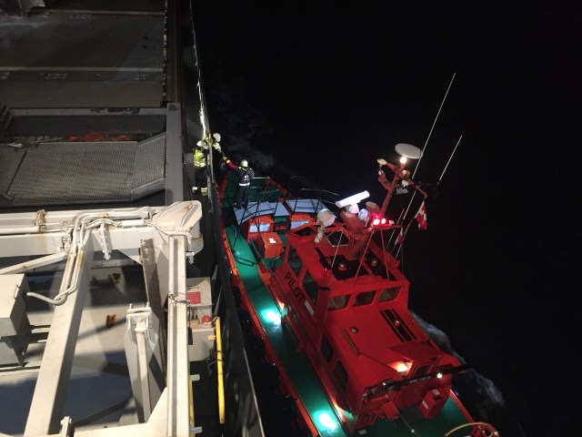 17:10 Färdig lossade och lots ombord så det är dags att avgå.