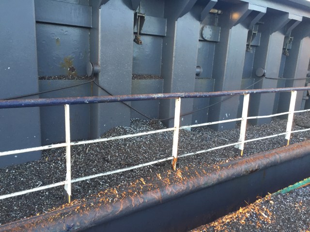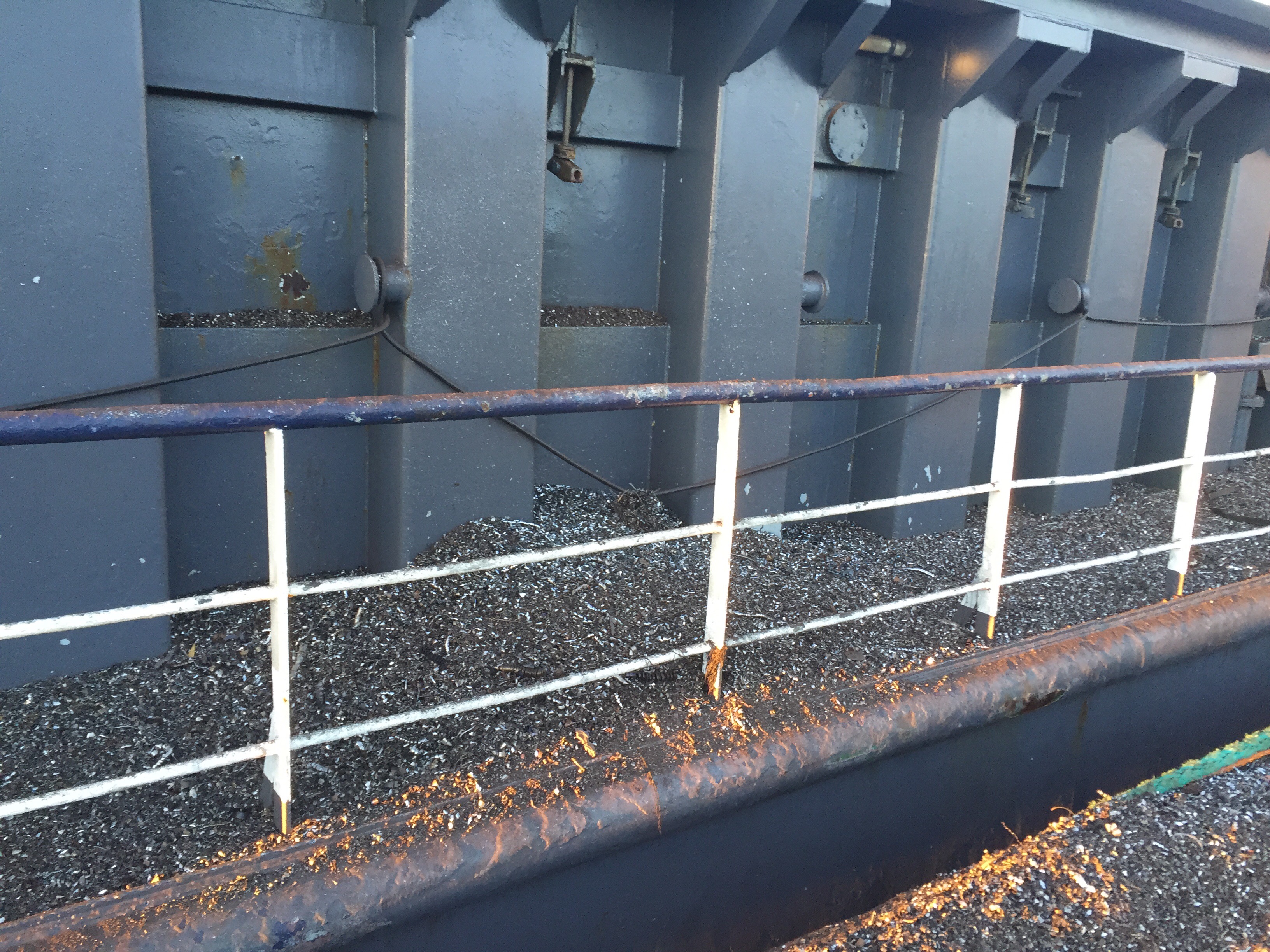 08:45 Färdig lastade och inväntar surveyor för att göra en dragit survey igen. Vi kommer fram till att vi lastat 2049 ton och skriver lastpapper på det. Sedan väntar jag på agenten. Han kommer med alla dokument och nybakade wienerlängder.