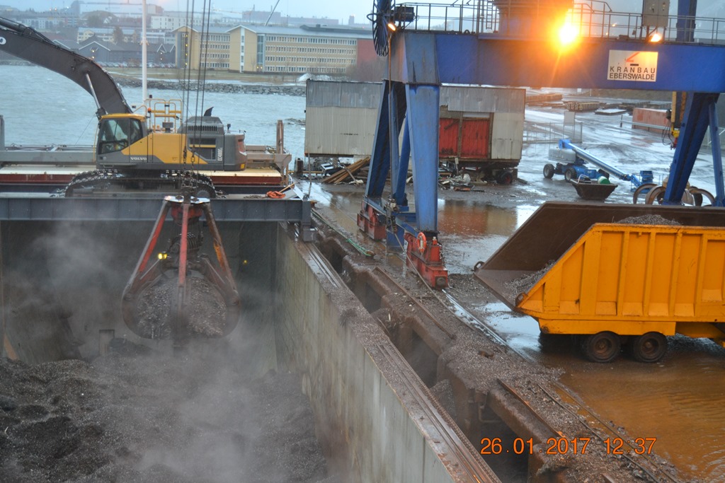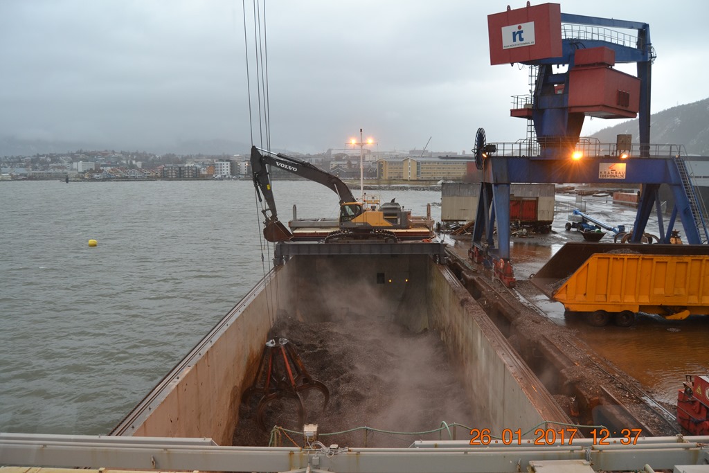 11:30 Påbörjar lossningen igen och det går inte fort. Lasten har blivit varmare pga regnet och är nu uppe i 42 grader.![]()