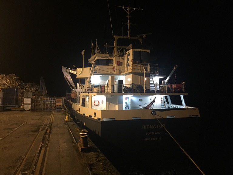 07:18 Vaknar av en jättesmäll och ett brak och tänker jisses vad händer. Men så kom jag på att de nog börjat lasta järnskrotet och att det var de stora järnbalkarna de började med. Går upp för att få lite kaffe och får då besked att vi börjat lasta.
