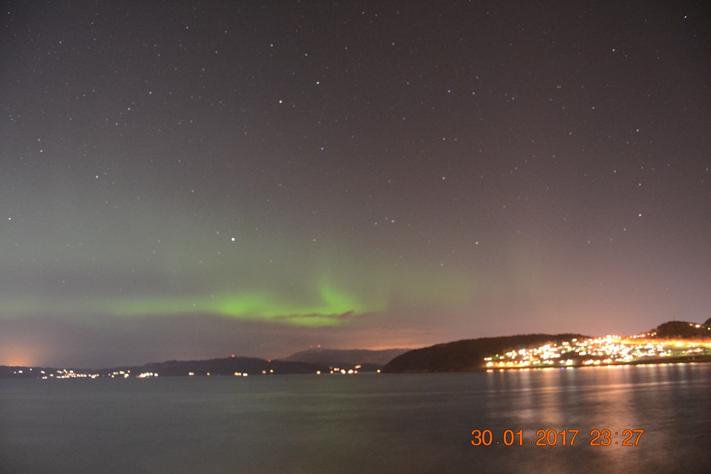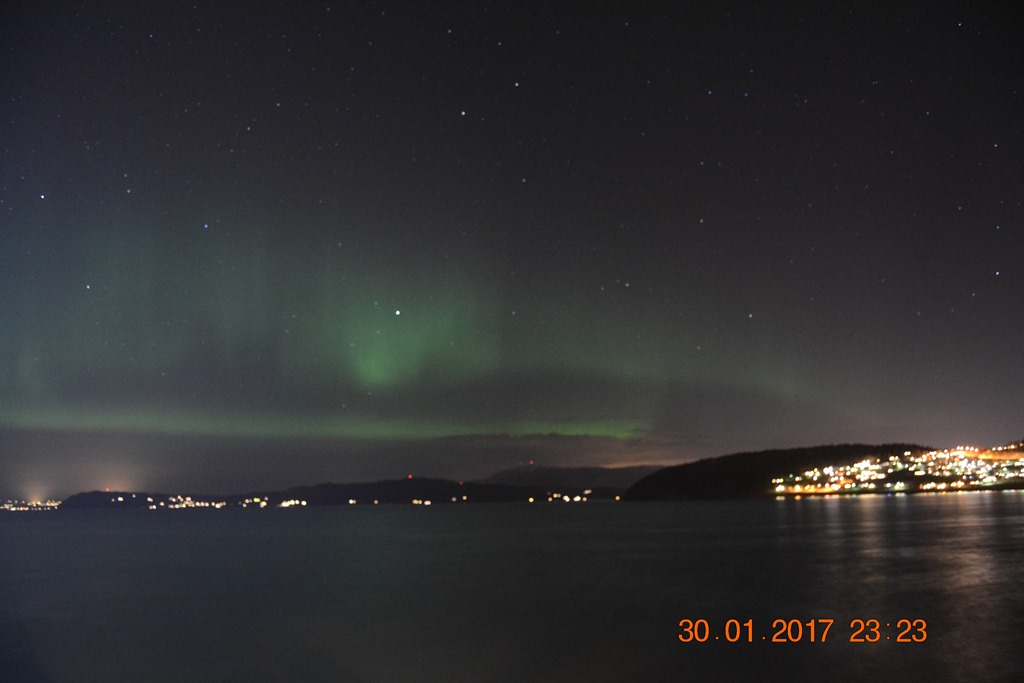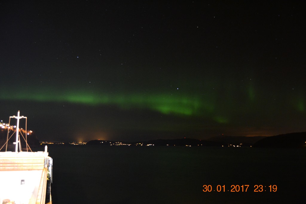 Sitter på bryggan och gör lite reseplanering inför de kommande resorna och ser plötsligt hur norrskenet börjar.![]()